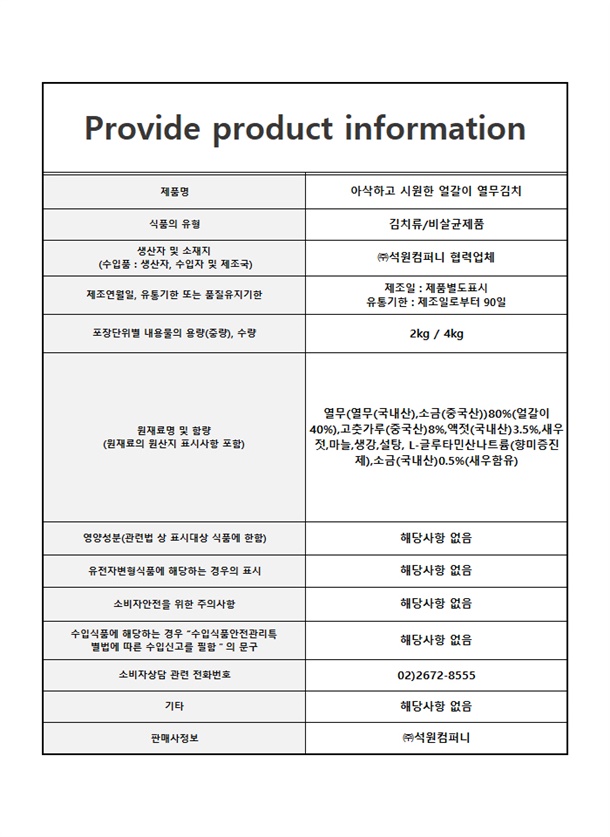 열무김치 300박스 한정 기존 가격 동결!