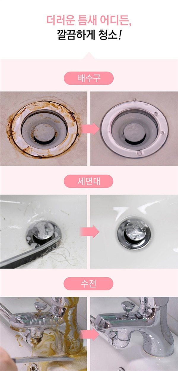틈새의 물때, 찌든 때도 쉽게 제거하는 탄탄한 파워 브러쉬