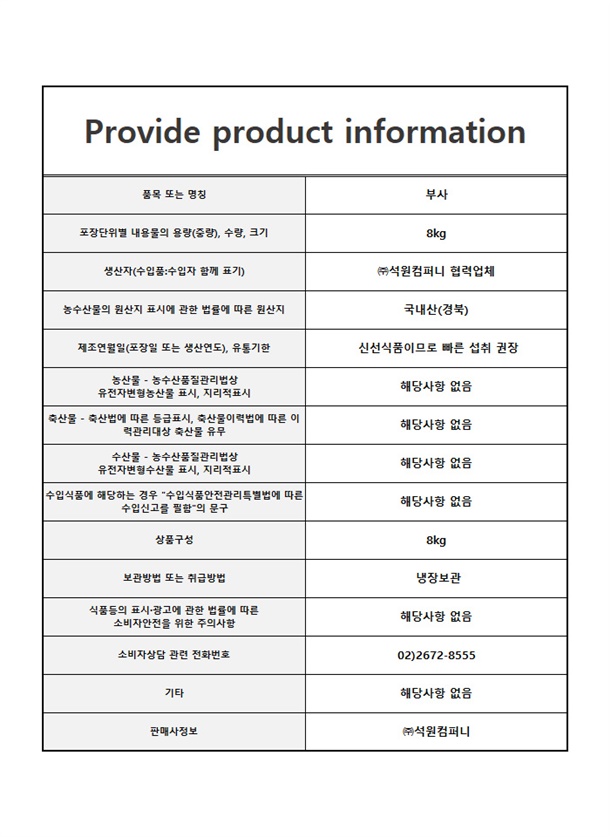 물가안정 부사 4kg 가격에 4kg 덤!