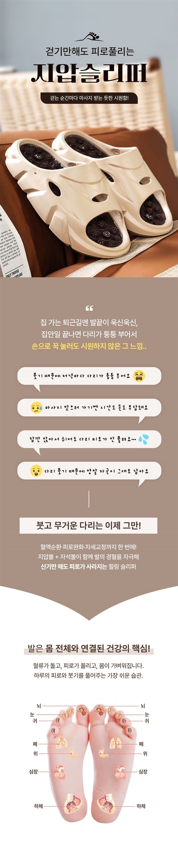 이 슬리퍼 신고 집안일 하면 발바닥을 시원하게 지압해줘 피로가 풀리는 느낌이 정말 좋아요~