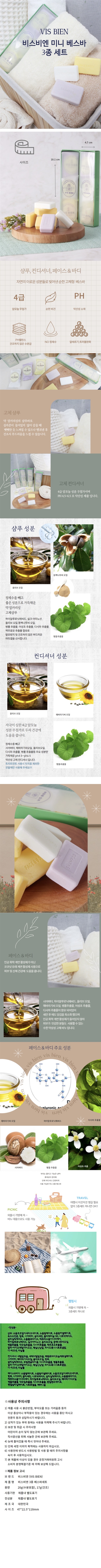 샴푸·컨디셔너·페이스앤바디 비누를 한 번에 담은 휴대용 올인원 클렌징 3종 세트.