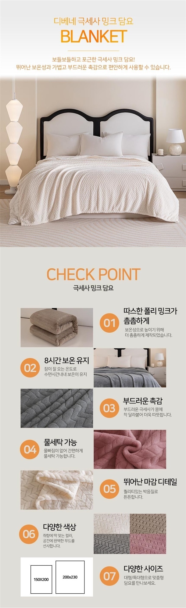 한 번 덮는 순간 “이래서 극세사 밍크 담요를 찾는구나” 싶은 바로 그 포근함!