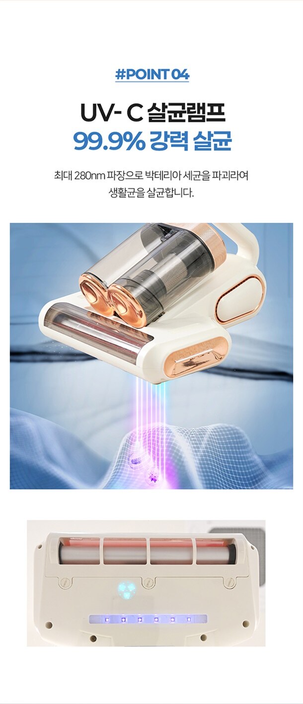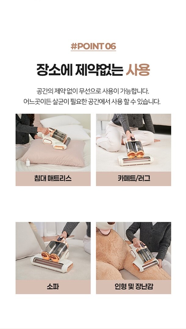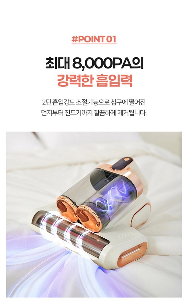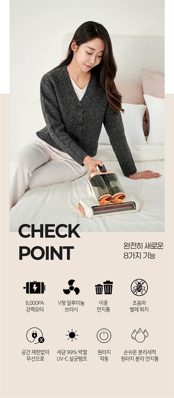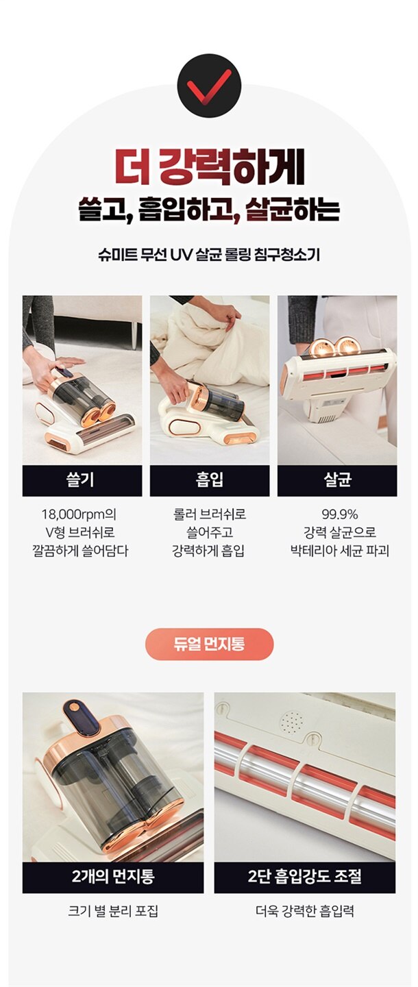 더 강력하게 쓸고 흡입하고 샬균하는 무선 침구청소기!