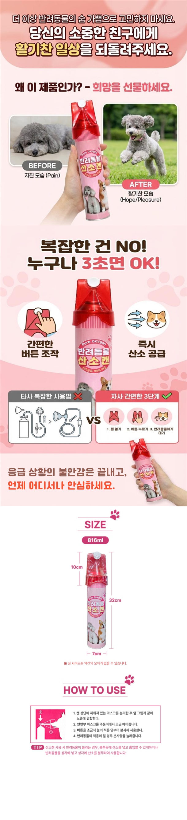 응급 상황이나 호흡이 불편할 때 빠르게 사용할 수 있는 반려동물 산소캔