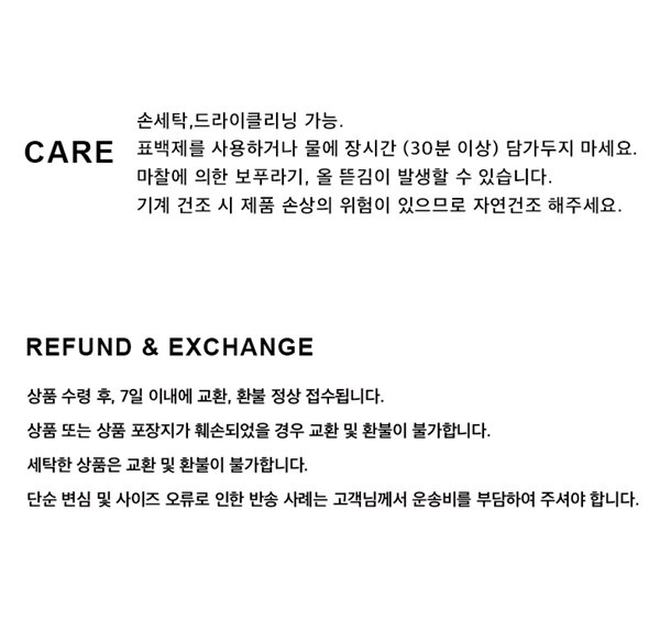· 변심 교환/반품의 경우 왕복 택배비를 부담해 주셔야 합니다. (택배비 상품별 상이)