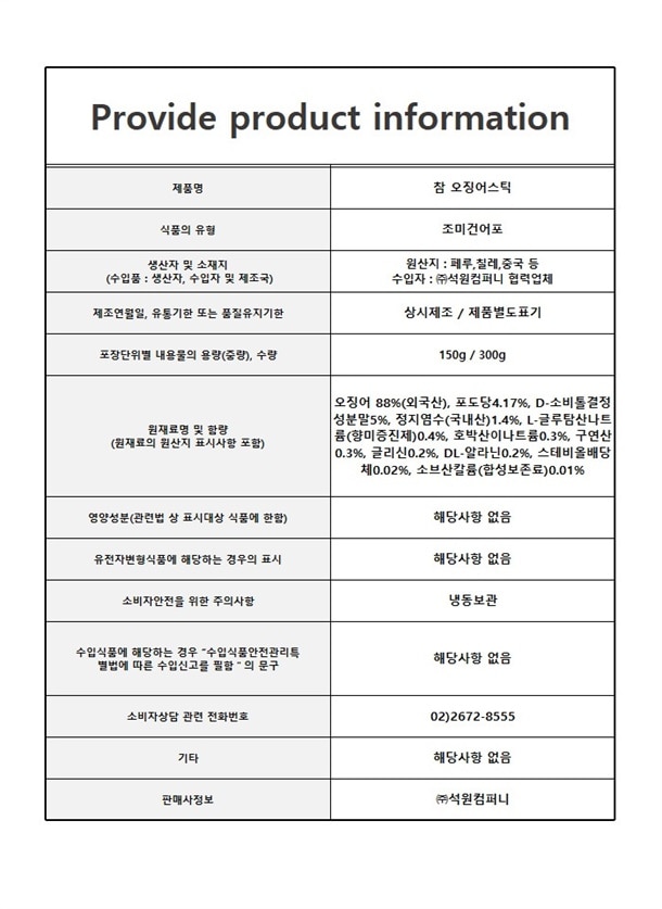 달콤짭짤 부드러운 참오징어스틱 8900원