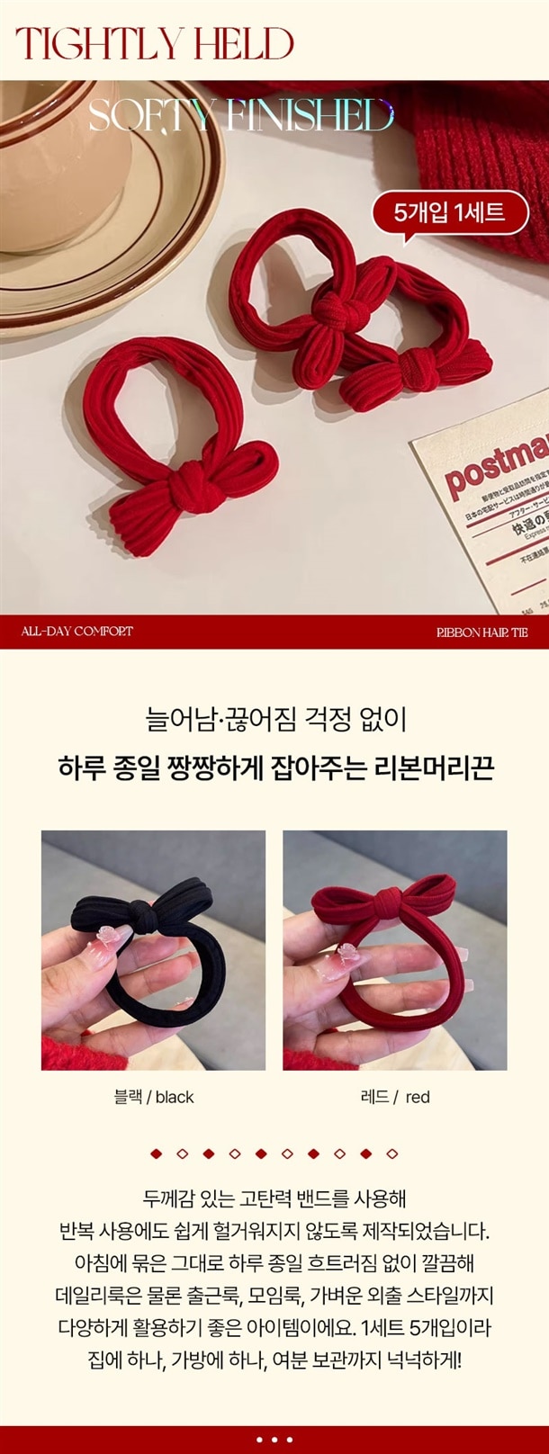 이 리본머리끈은 처음 묶었을 때 그 짱짱함이 며칠 써도 그대로라서 깜짝 놀랐어요. 하루 종일 묶고 있어도 헐거워지지 않고 머리도 잘 잡아줘서 괜히 믿음이 가더라고요.