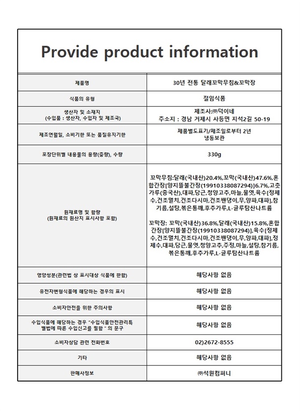 · 배송비 : 3,500원(6개 마다 기본배송비 반복 부과)