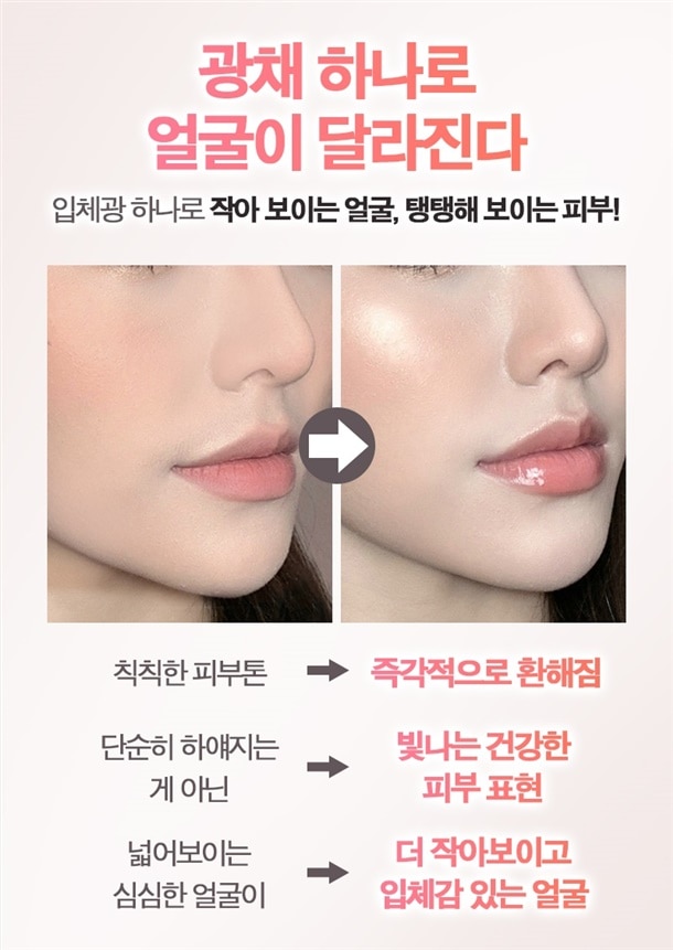 은은하게 반짝이는 3D 입체 광채가 한순간에 얼굴 분위기를 밝혀줍니다.