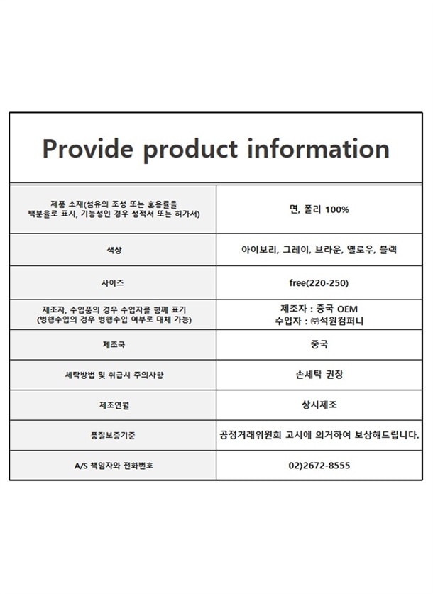 · 교환/반품/AS 등은 "공정거래위원회"에서 정한 소비자 분쟁 해결 기준을 따르고 있습니다.