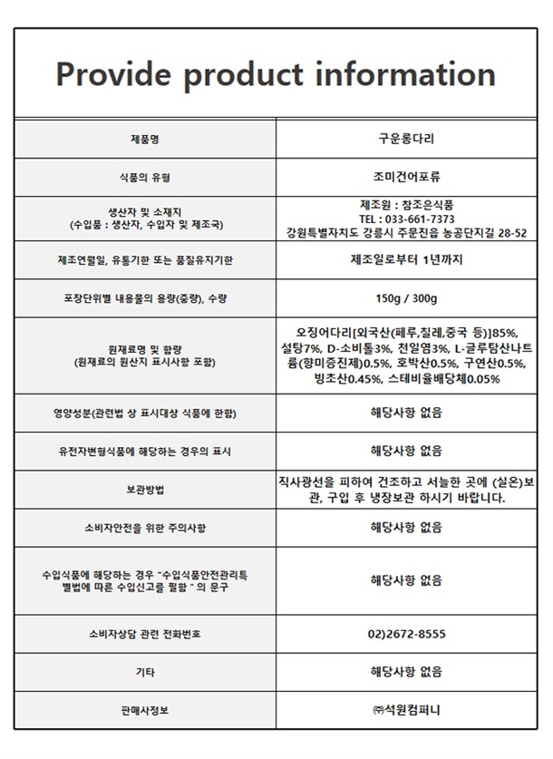 큼직 두툼 쫄깃한 구운 롱다리!