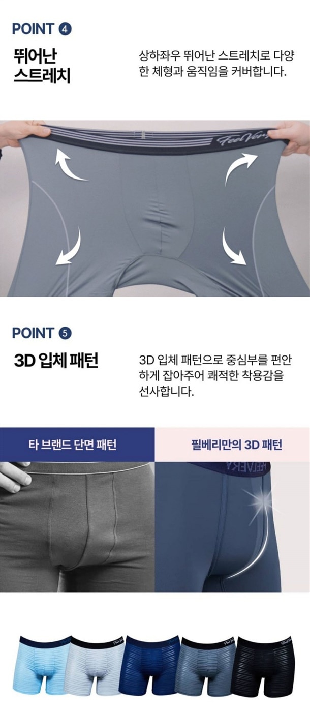 필베리 남성 드로즈 5종 세트는 데일리로 입기 좋은 편안한 착용감의 실속형 남자 속옷 세트입니다.