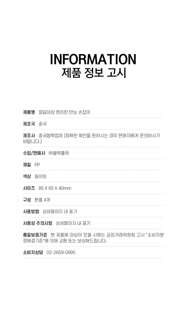 · 교환/반품/AS 등은 "공정거래위원회"에서 정한 소비자 분쟁 해결 기준을 따르고 있습니다.