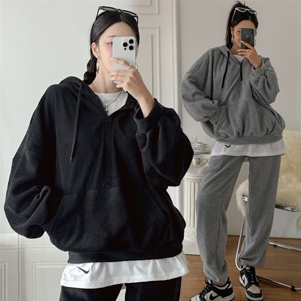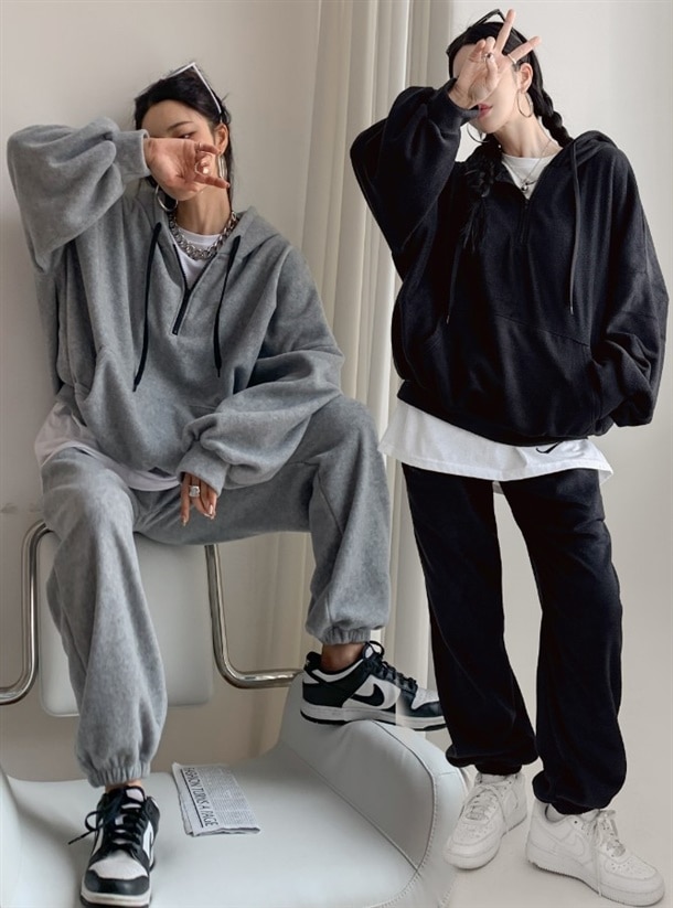 캐주얼하게 입기좋은 따뜻한 아노락 스타일에 조거팬츠 구성!