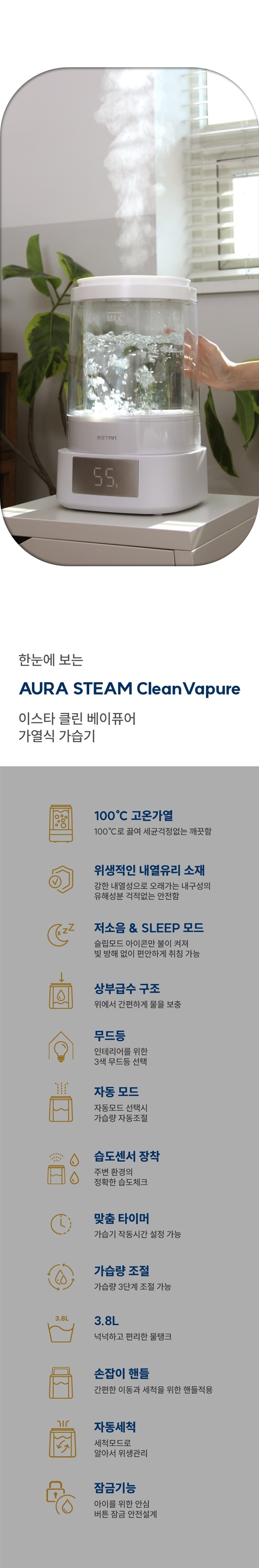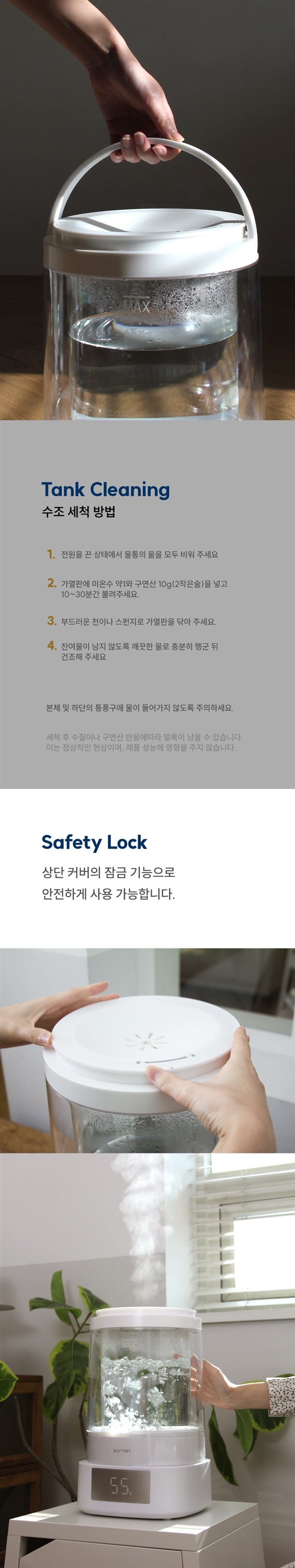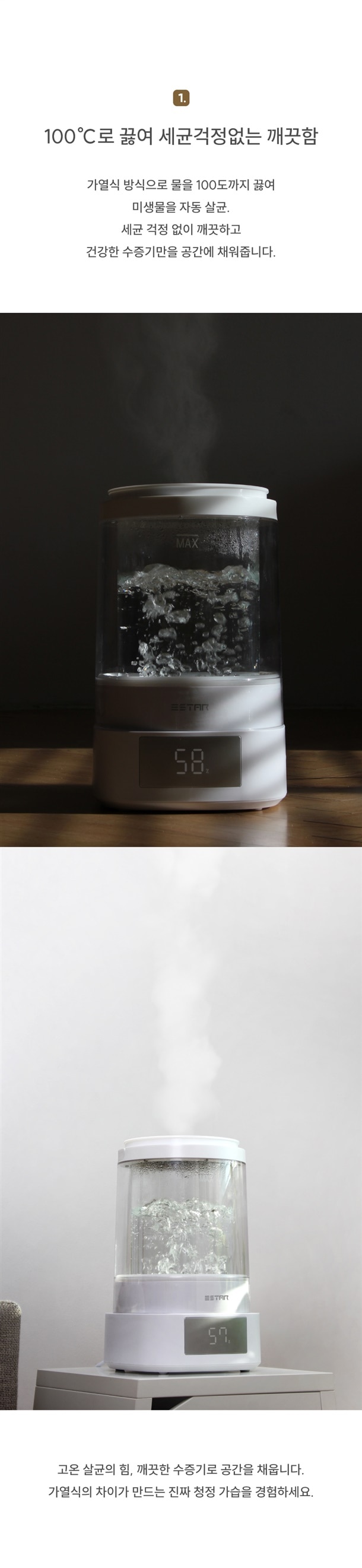 가열식 방식으로 물을 100도까지 끓여 미생물을 자동 살균!