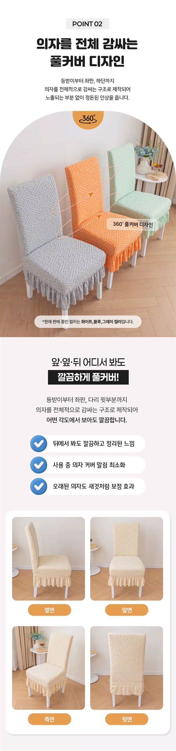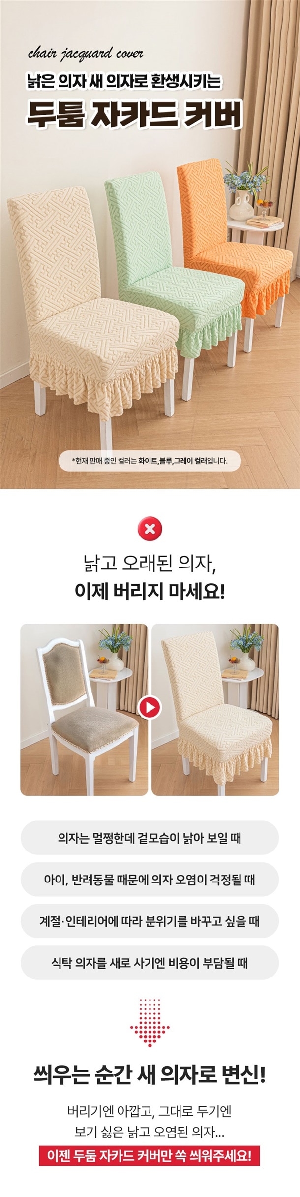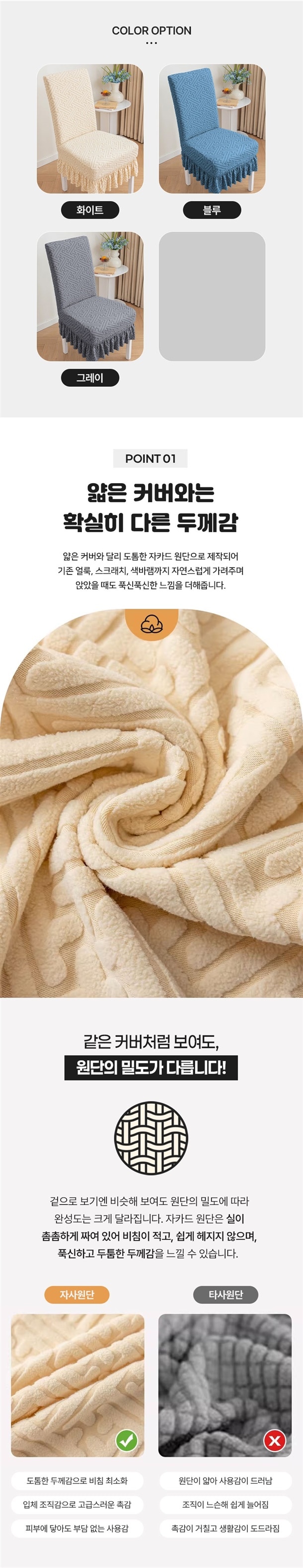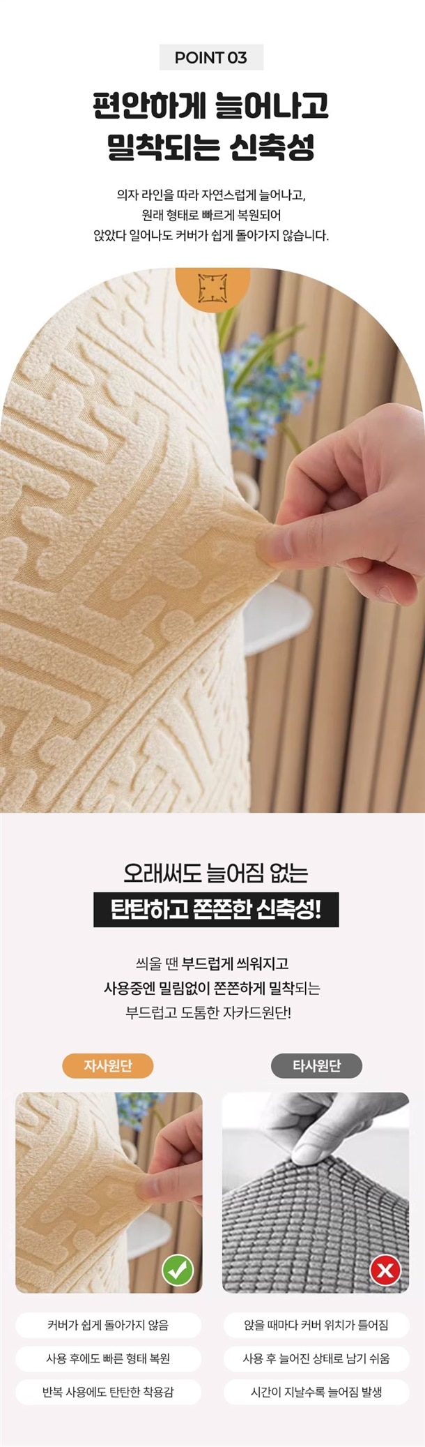 씌워보자마자 분위기가 확 달라져서 진짜 새 의자 들여놓은 느낌이 나더라고요. 두툼해서 앉았을 때 차가운 느낌도 없고, 자카드 무늬 덕분에 집이 훨씬 정돈돼 보입니다~!!