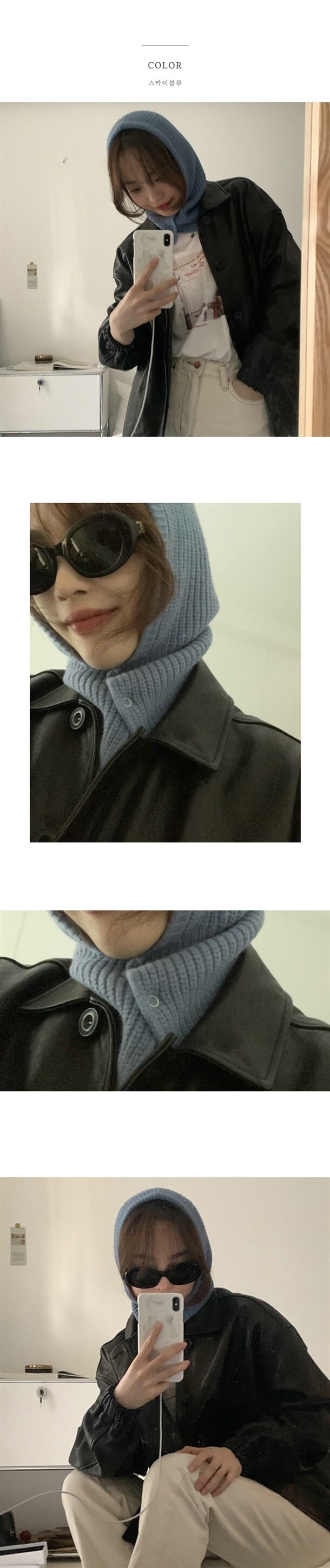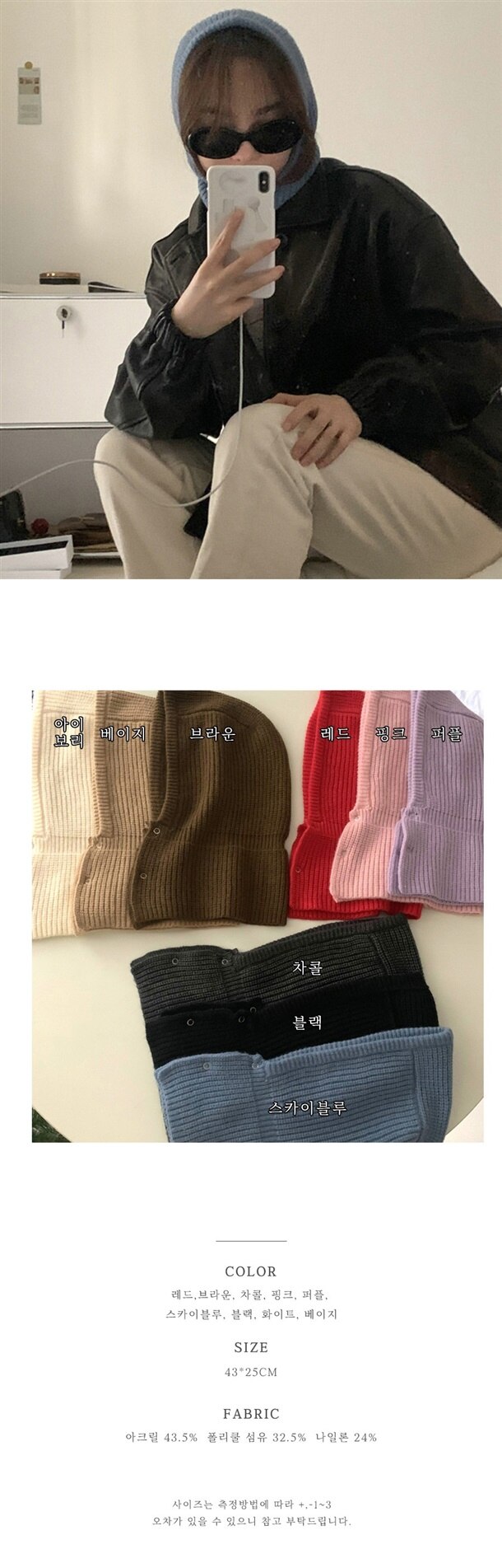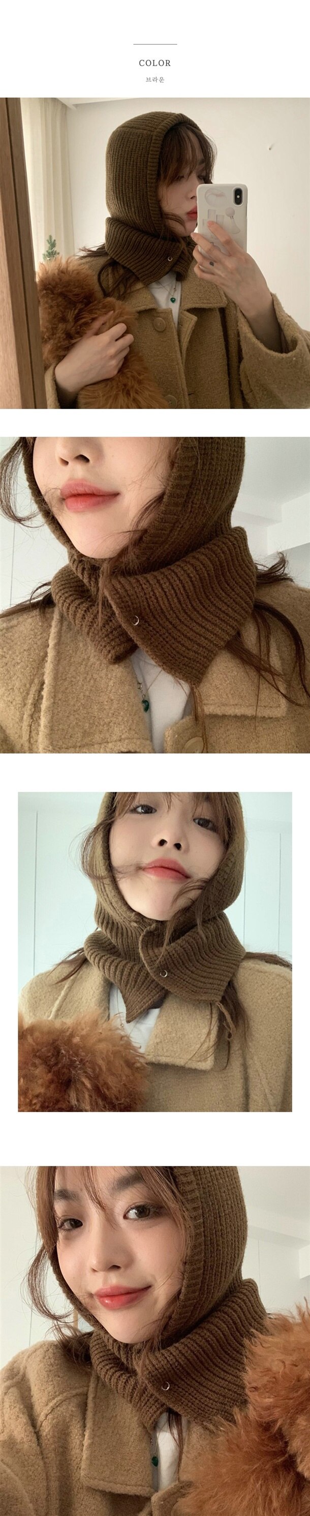 똑딱 투버튼 단추 바라클라바 후드모자