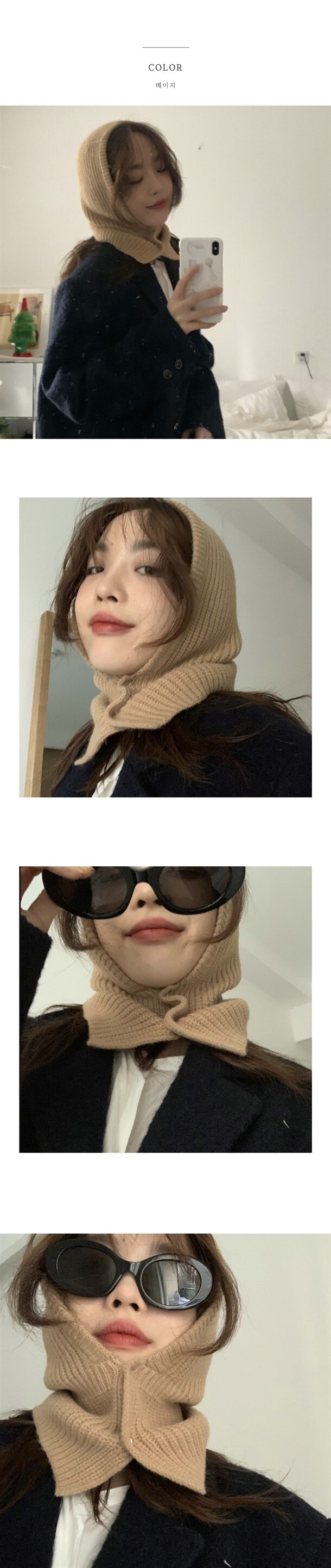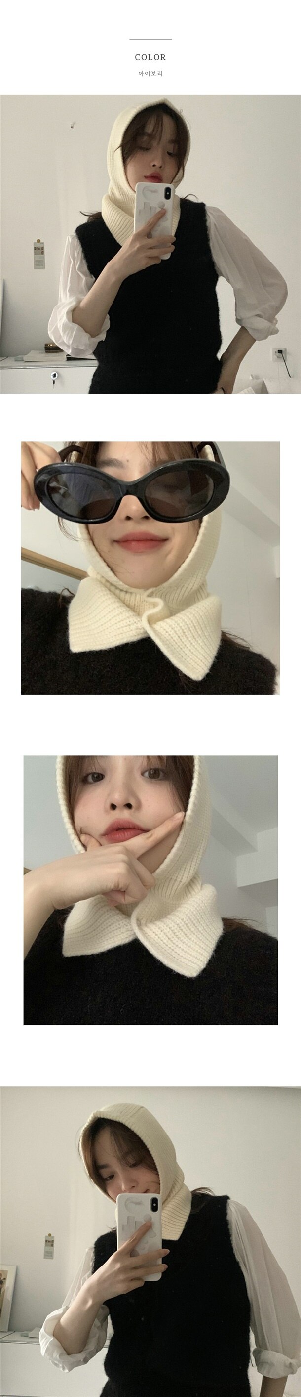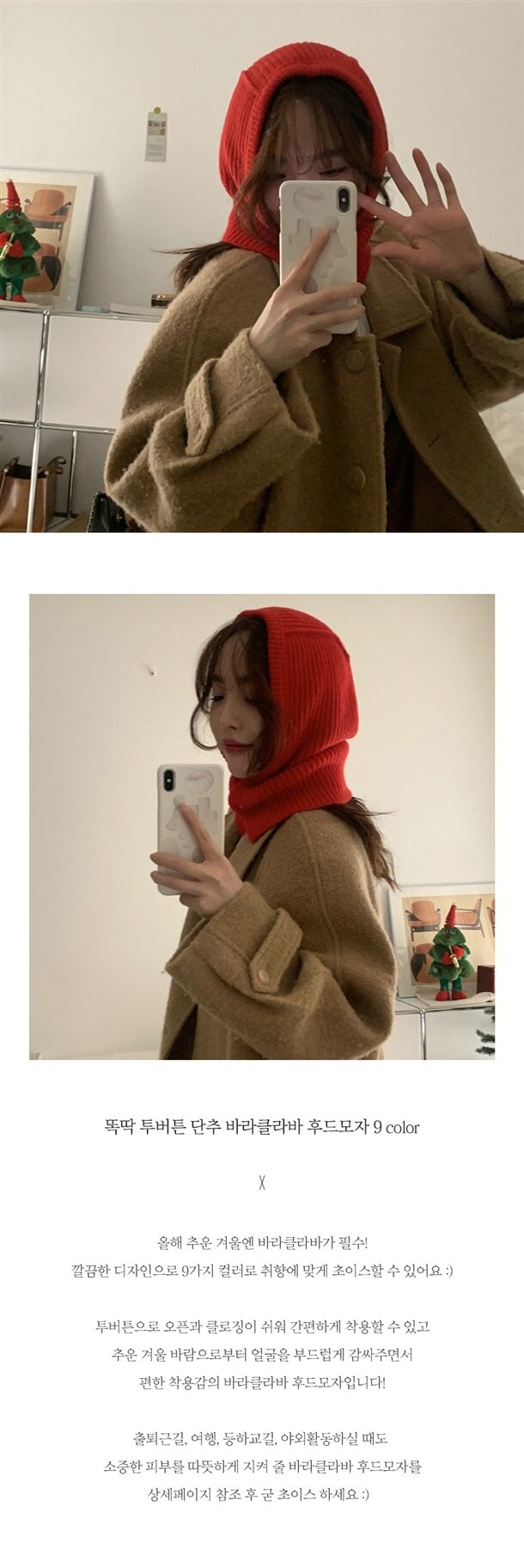 똑딱 투버튼 단추 바라클라바 후드모자
