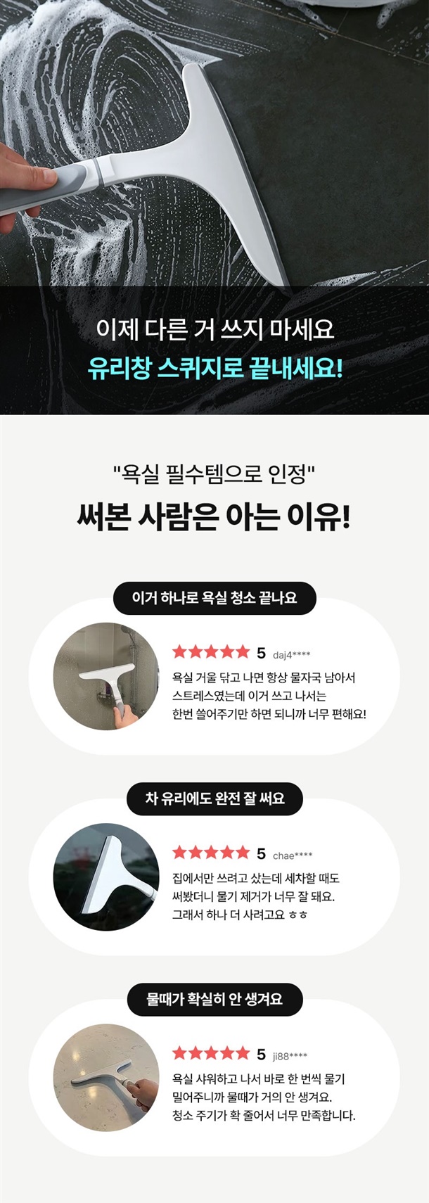 밀착력 좋은 실리콘 헤드라 물자국 없이 깔끔하게 제거되고요^^