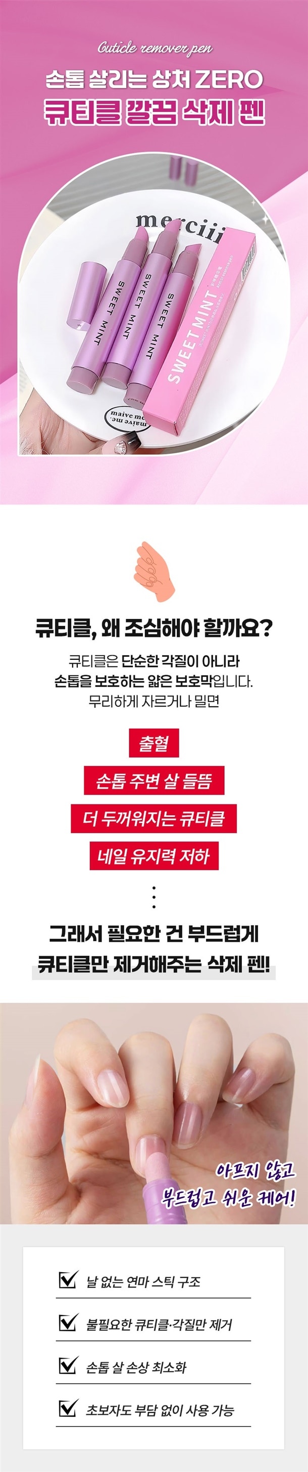 거스러미도 깔끔하게 정리되고, 손톱 끊어짐 걱정 전혀 없고, 상처 날 일도 없어서 마음 놓고 쓸 수 있어요.