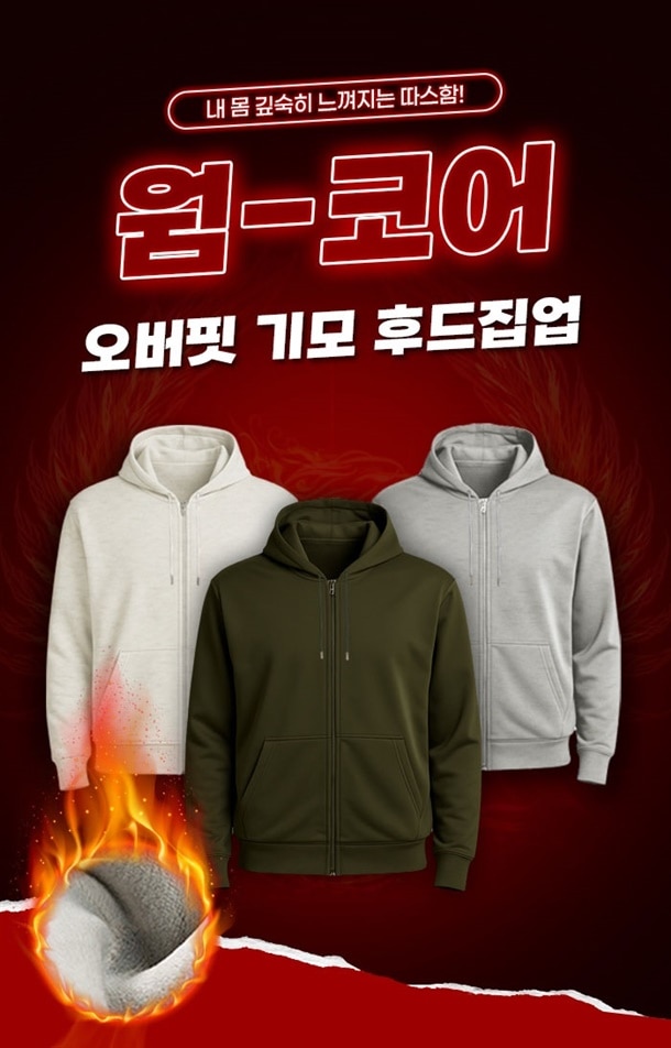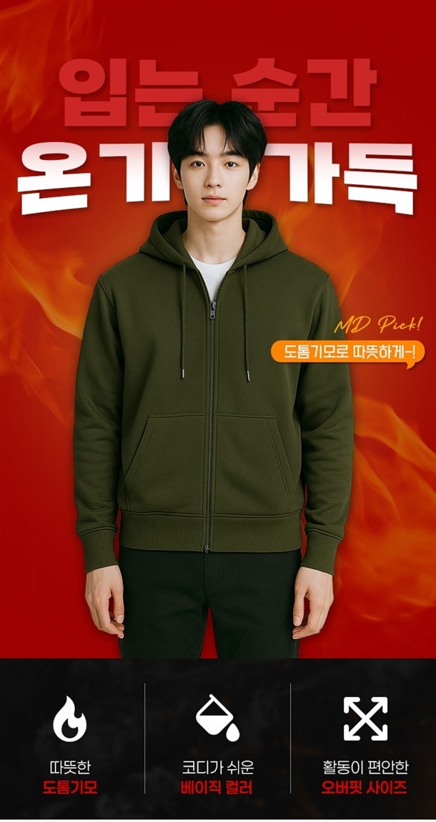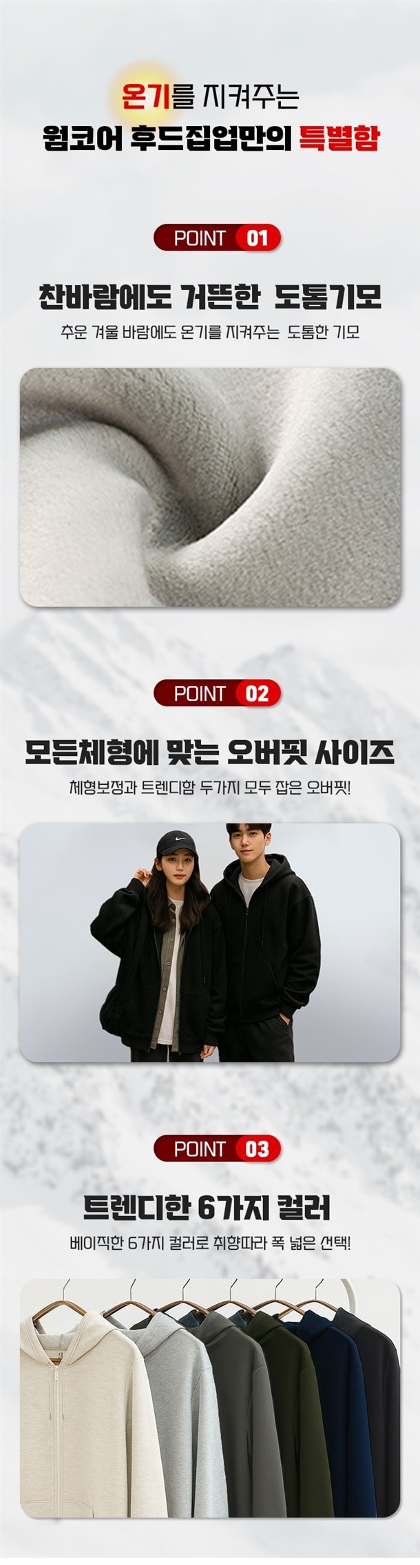 내몸 깊숙히 느껴지는 따스함! 오버핏 기모 후드집업! 입는 순간 온기 가득!
