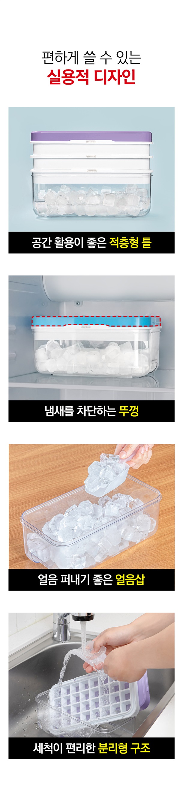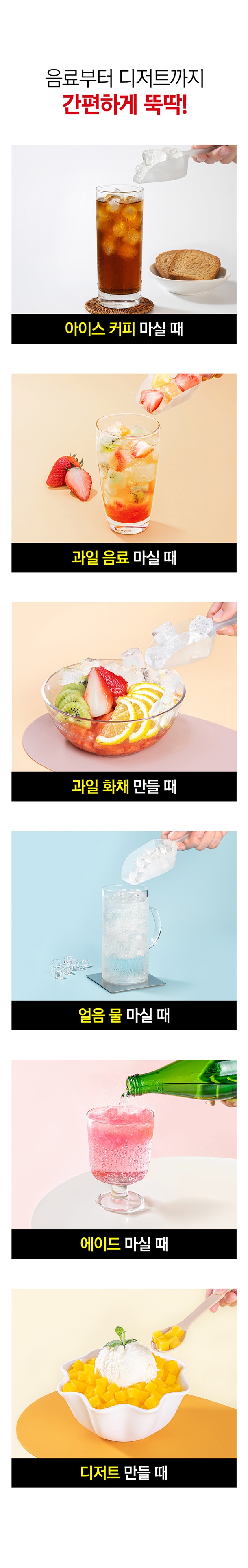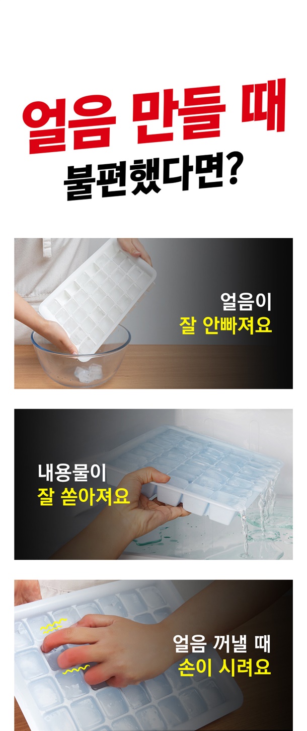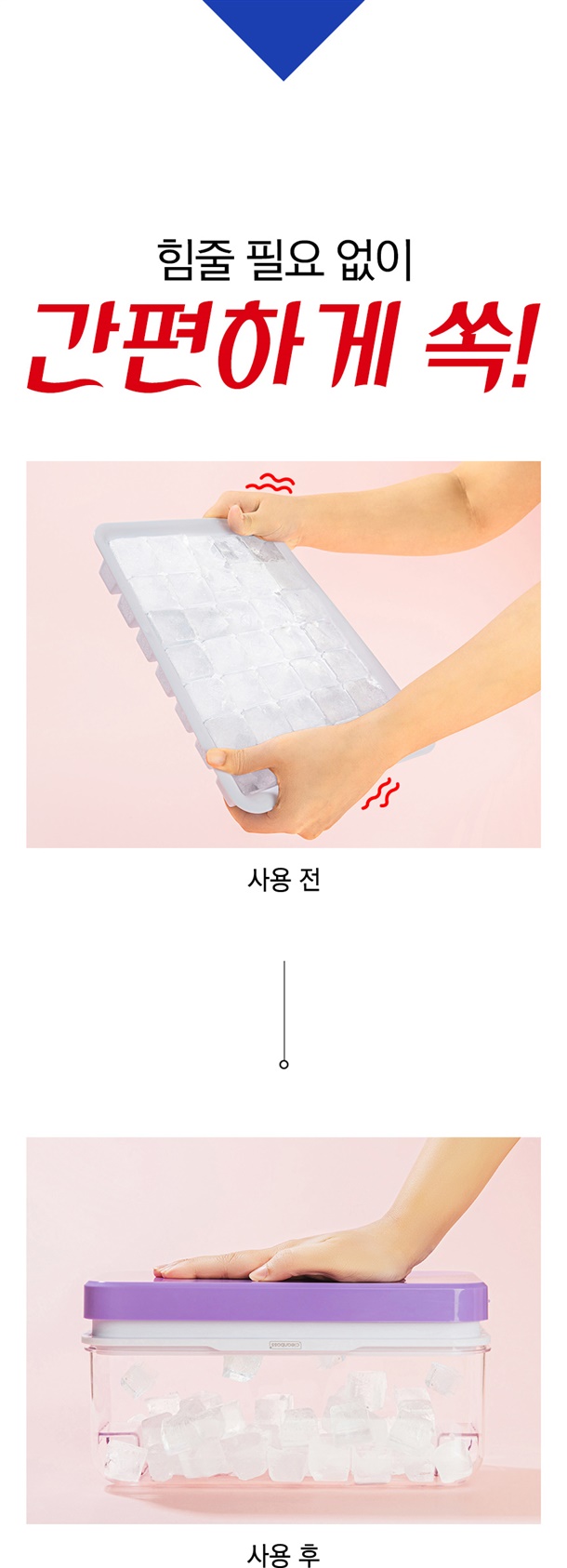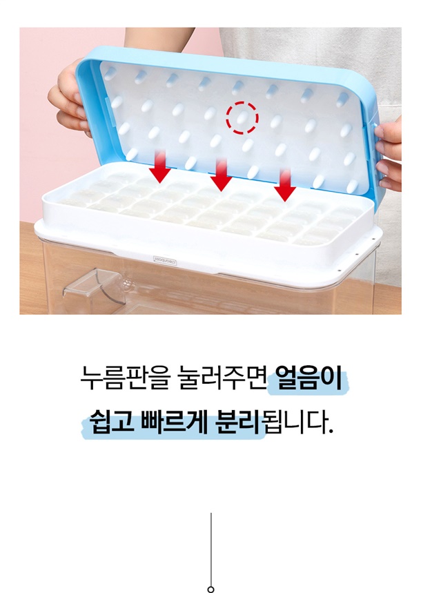 힘줄 필요없이 눌러만주면 얼음이쏙! 간편하게 빠져나와요~