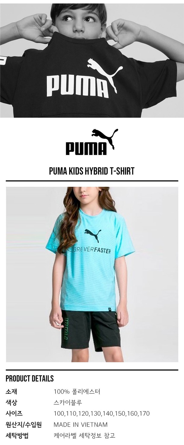 푸마 로고의 아동용 하이브리드 키즈 반팔티