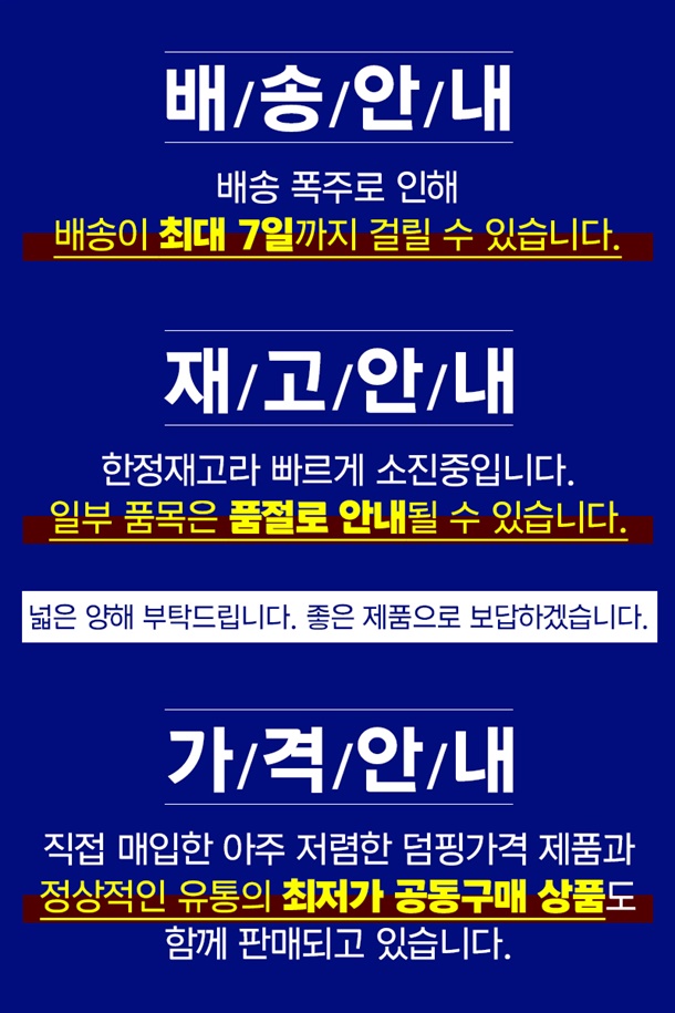 · 상품 불량 사유와 사진을 남겨 주시면 빠른 처리가 가능합니다.