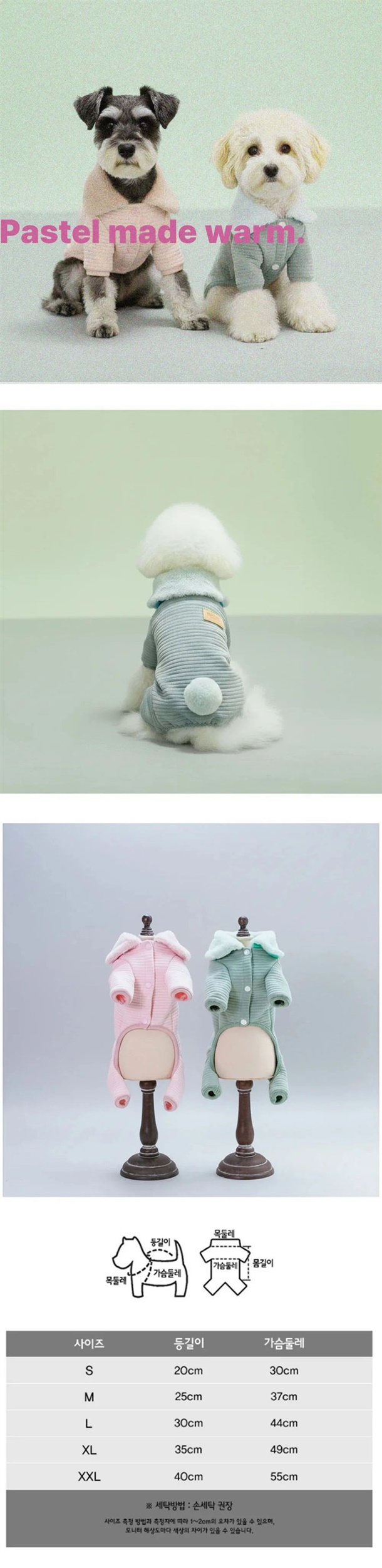 부드러운 파스텔 컬러와 포근한 보온감으로 겨울 내내 편안하게 입히기 좋은 애견 니트 자켓