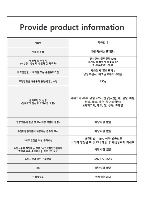 · 배송비 : 3,500원(4개 마다 기본배송비 반복 부과)