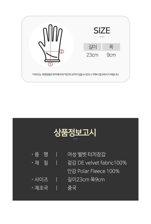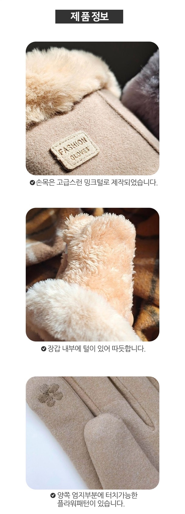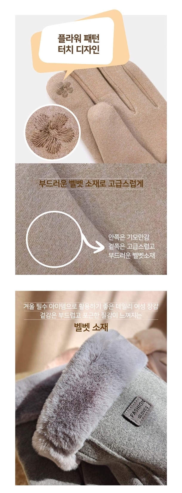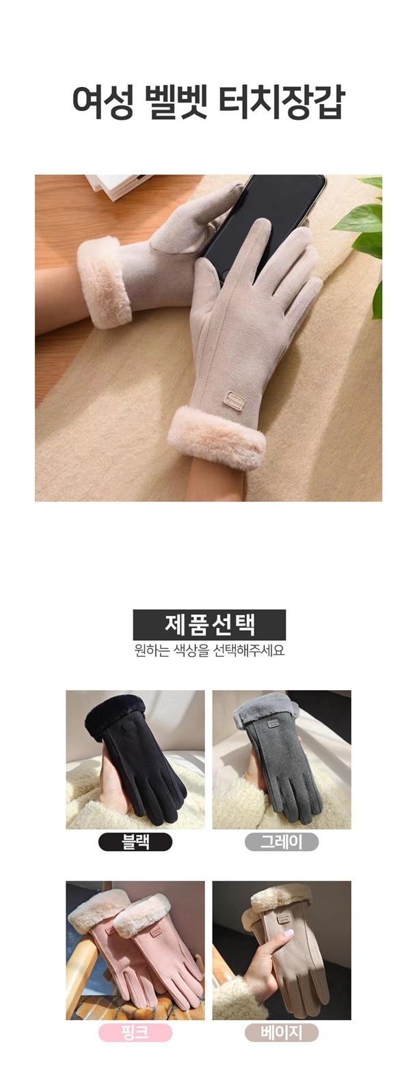 여성 벨벳 겨울장갑 스마트폰 터치장갑