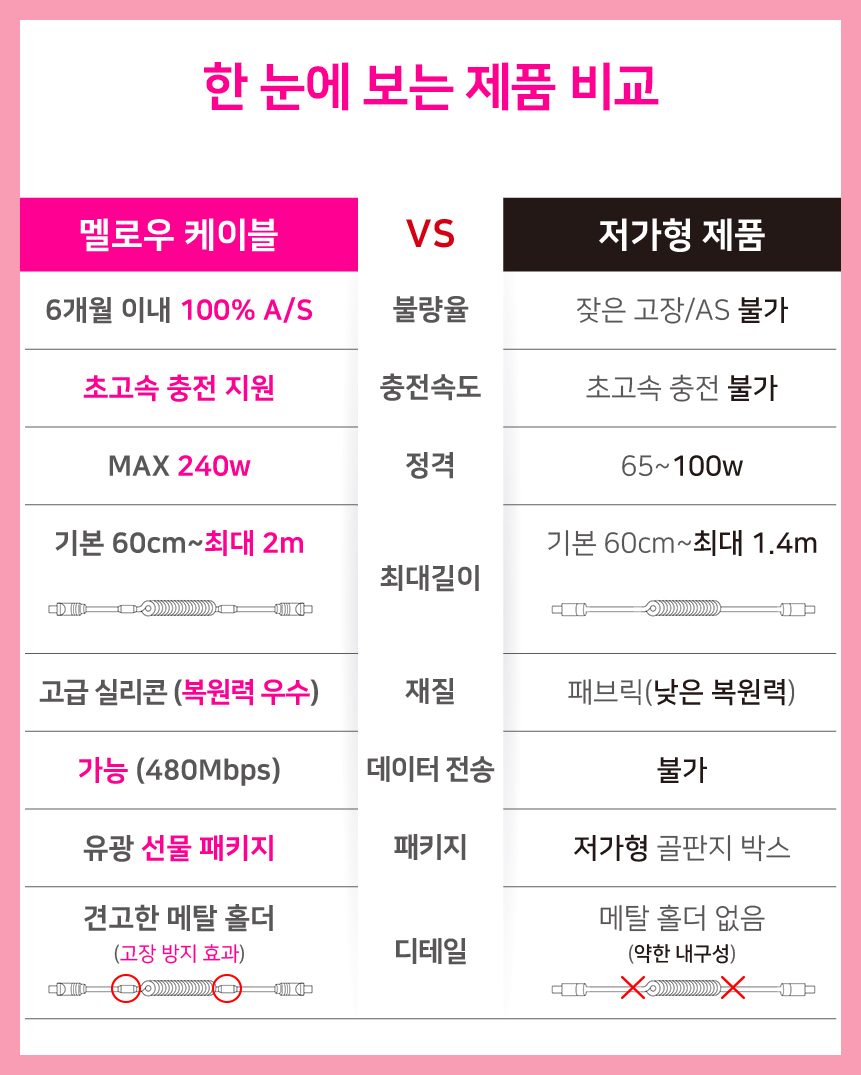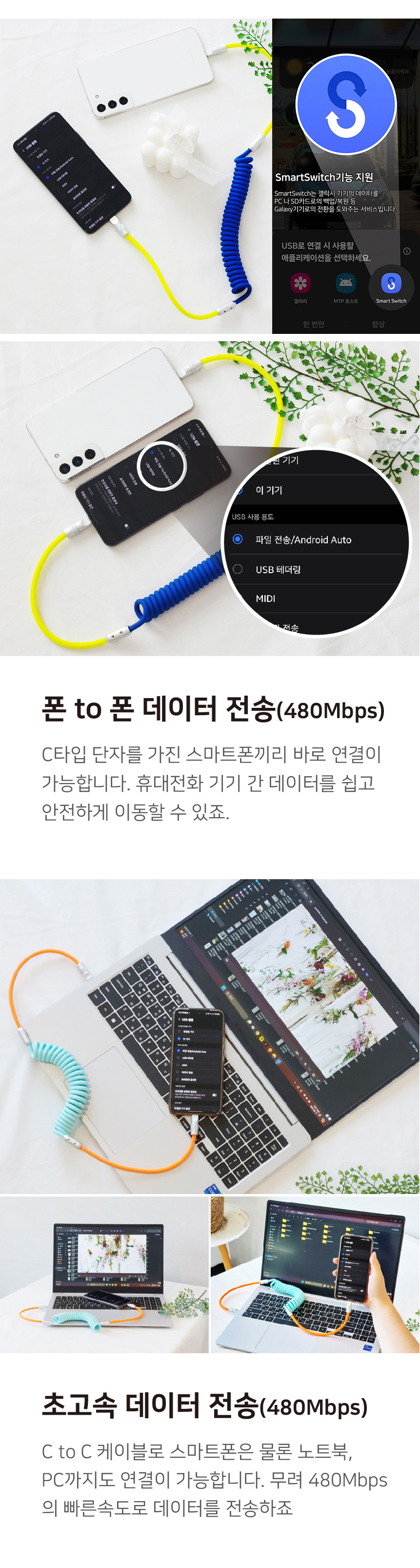 예쁘고 편리한 꼬임방지 스프링 케이블