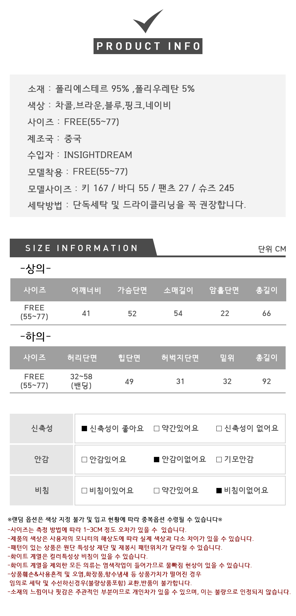 상, 하의 세트 구성으로 집에서도 예쁘게!