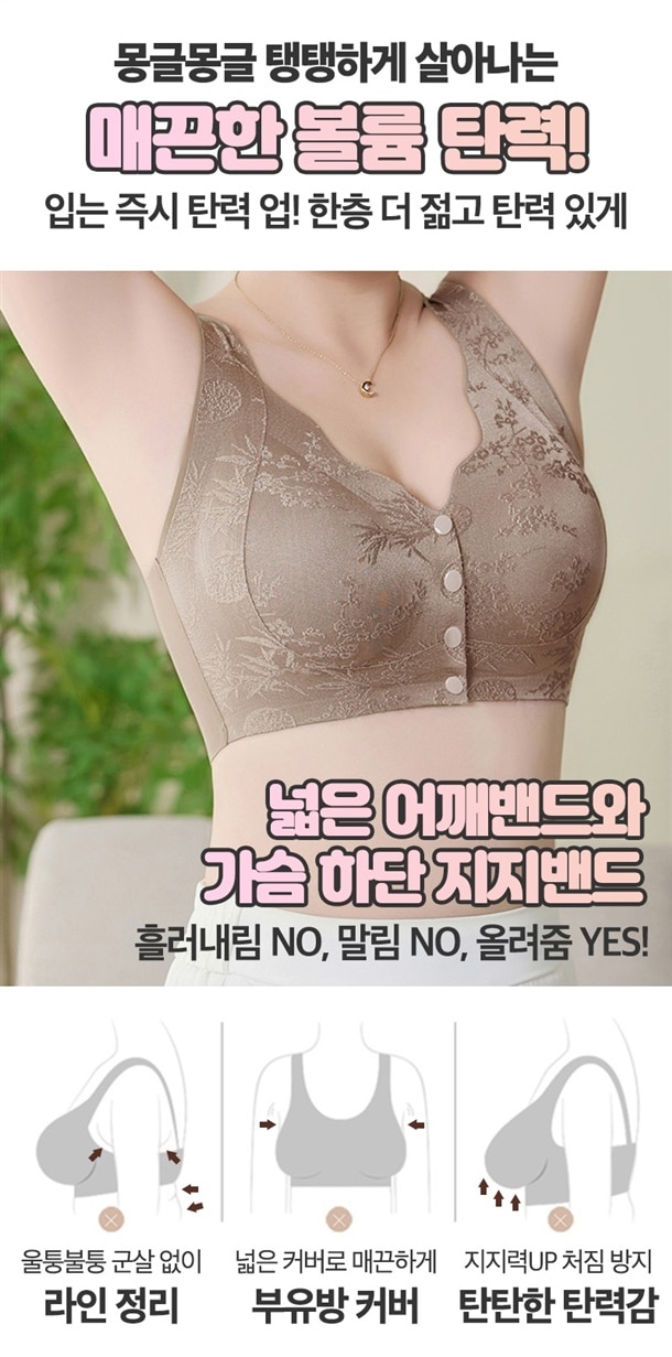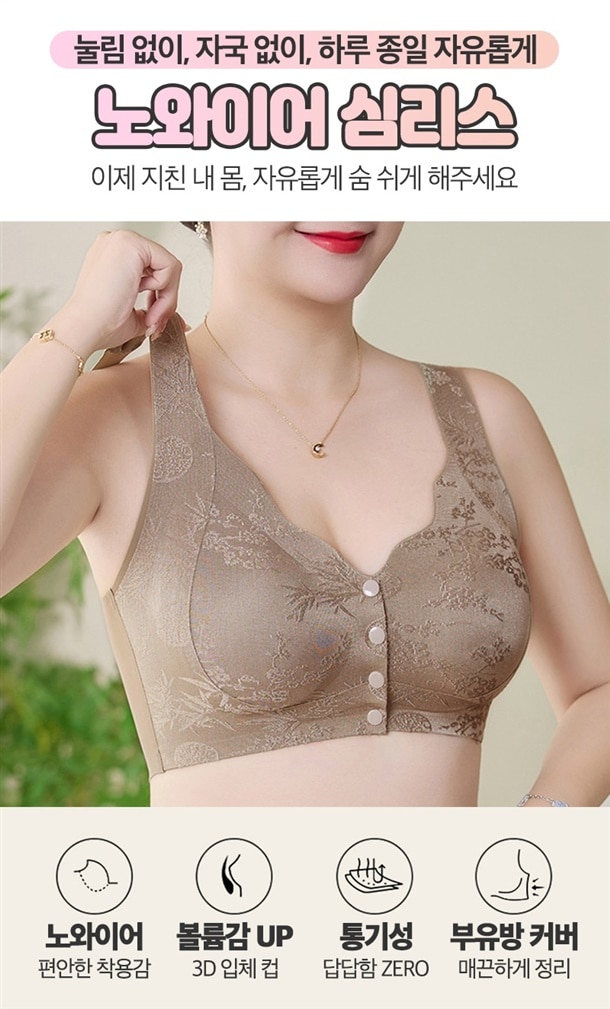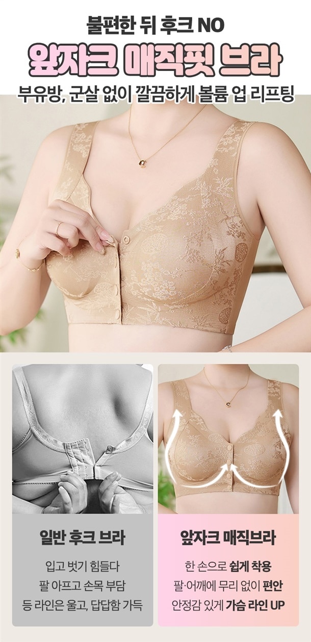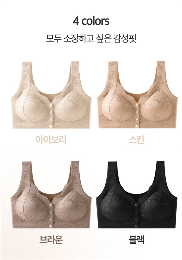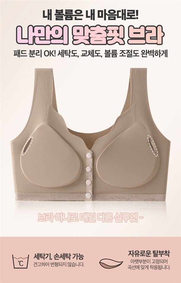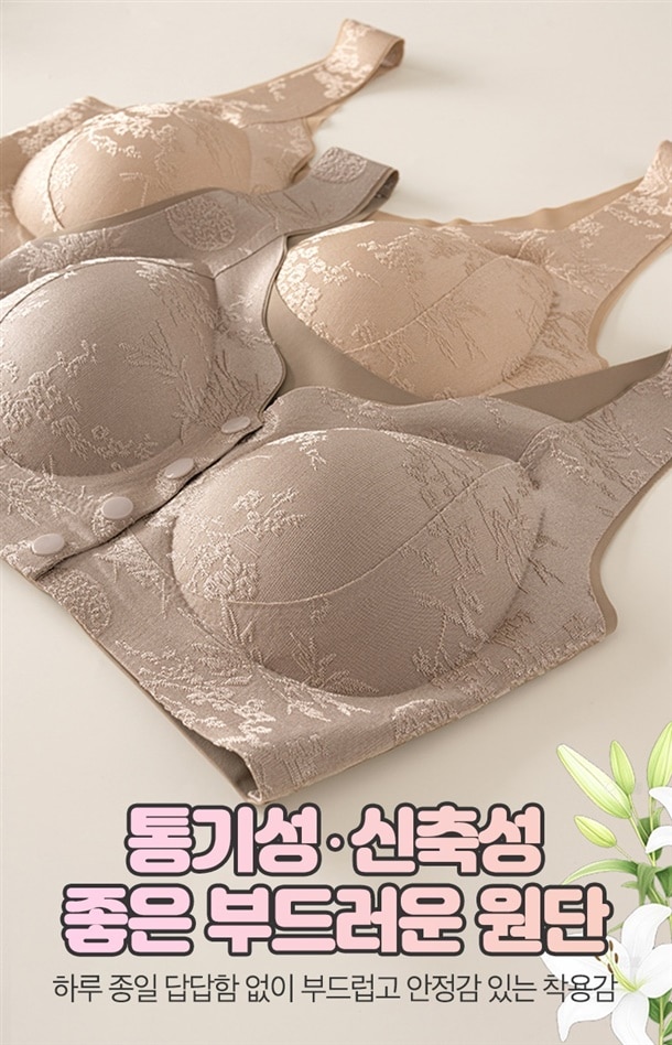 앞후크 디자인으로 착용이 간편하고, 가슴을 부드럽게 모아주는 입체 컵이 흐트러진 라인을 예쁘게 잡아줘요.