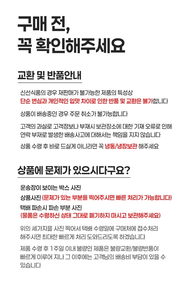 · 상품 불량 사유와 사진을 남겨 주시면 빠른 처리가 가능합니다.