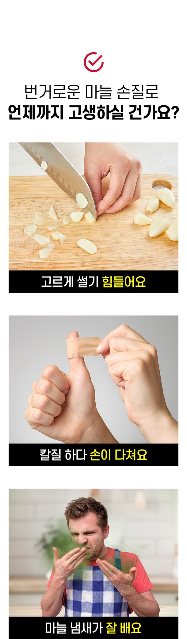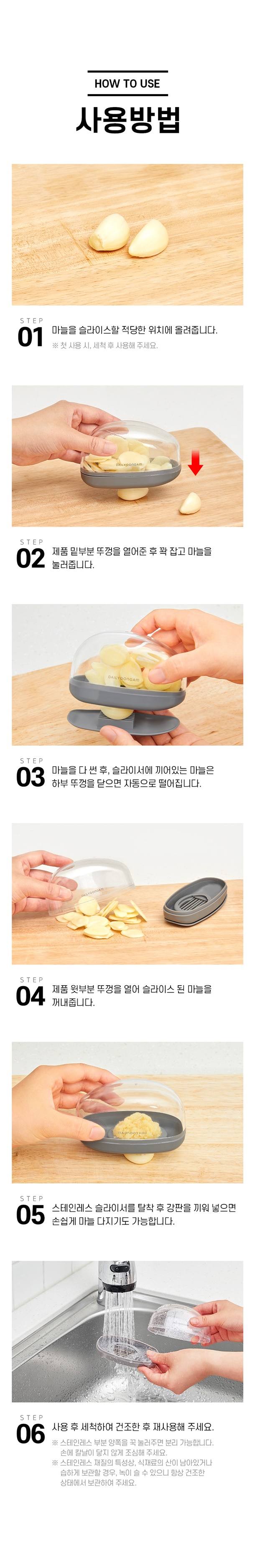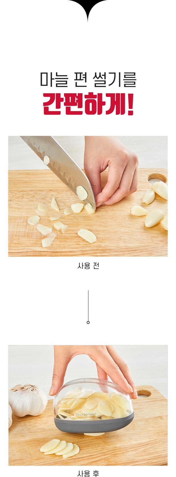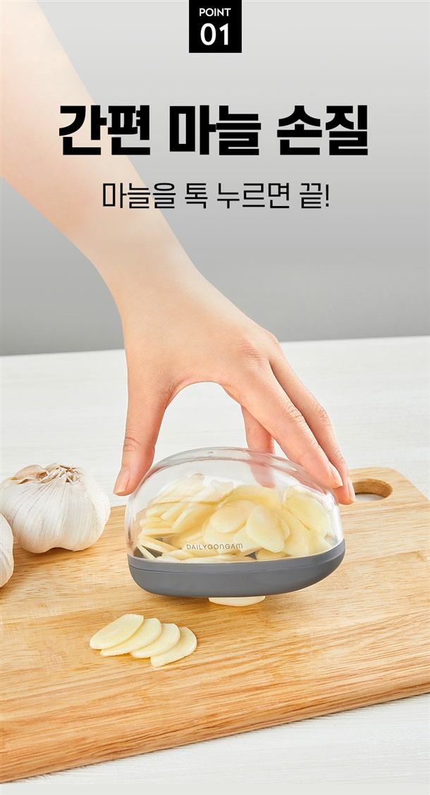 번거로운 칼질은 이제 그만~ 꾹 누르기만 하면 손쉽게 마늘 커팅 끝!