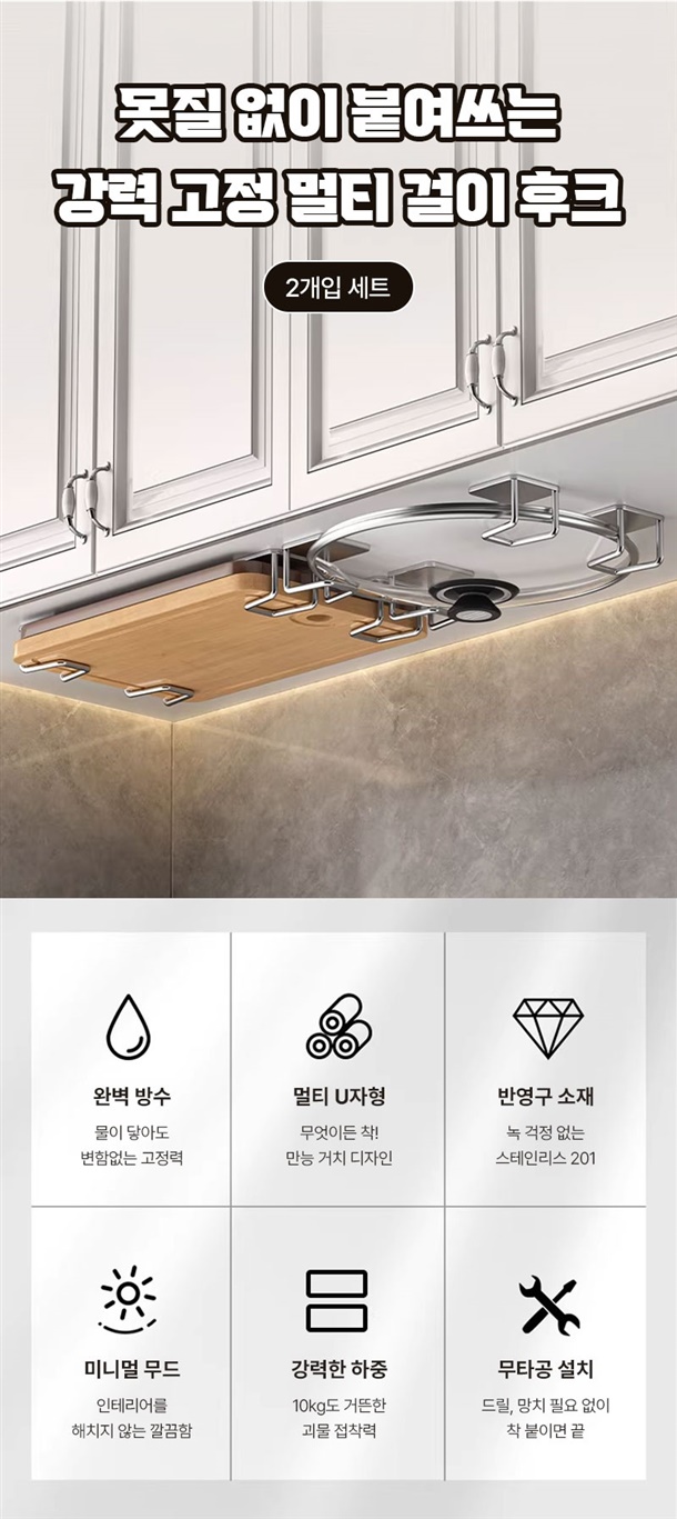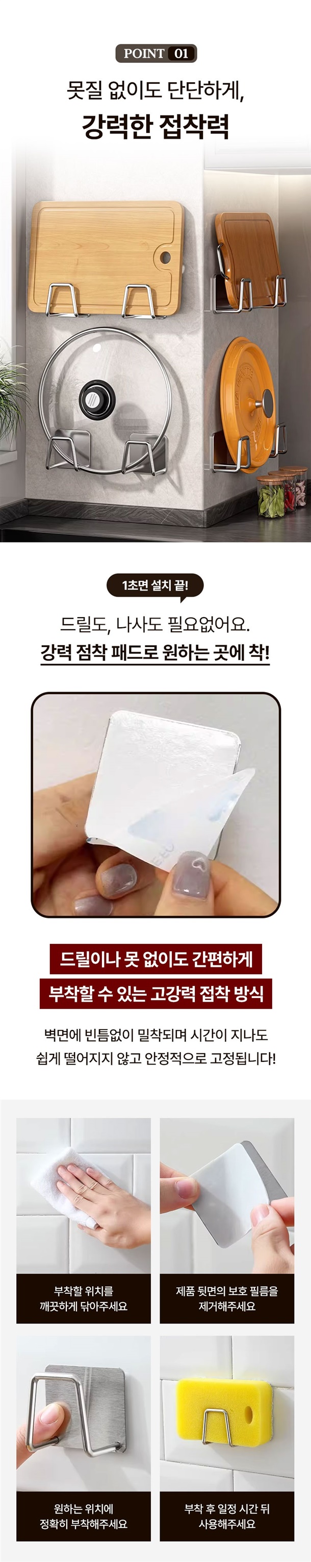 못질 없이 그냥 붙이면 끝인데 고정력이 생각보다 훨씬 좋아서 무거운 것도 잘 버텨요