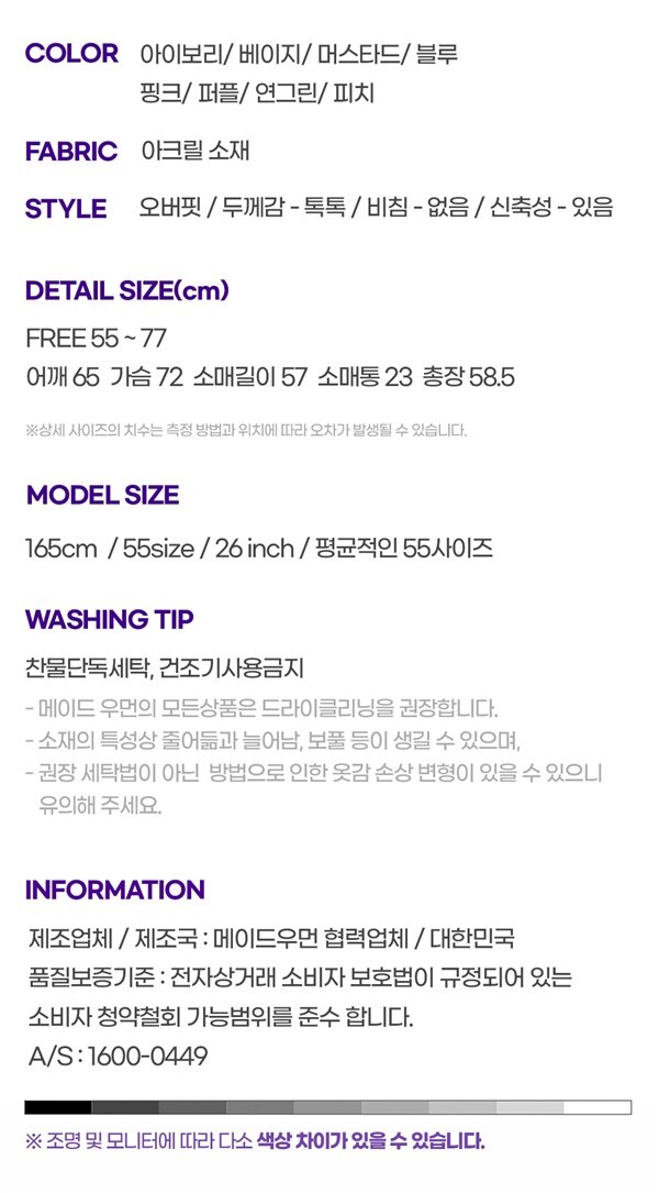 8가지 색감에 포근하고 부드러운 여리핏 니트! 여리여리하게 가라앚는 핏이 매력적이에요^^
