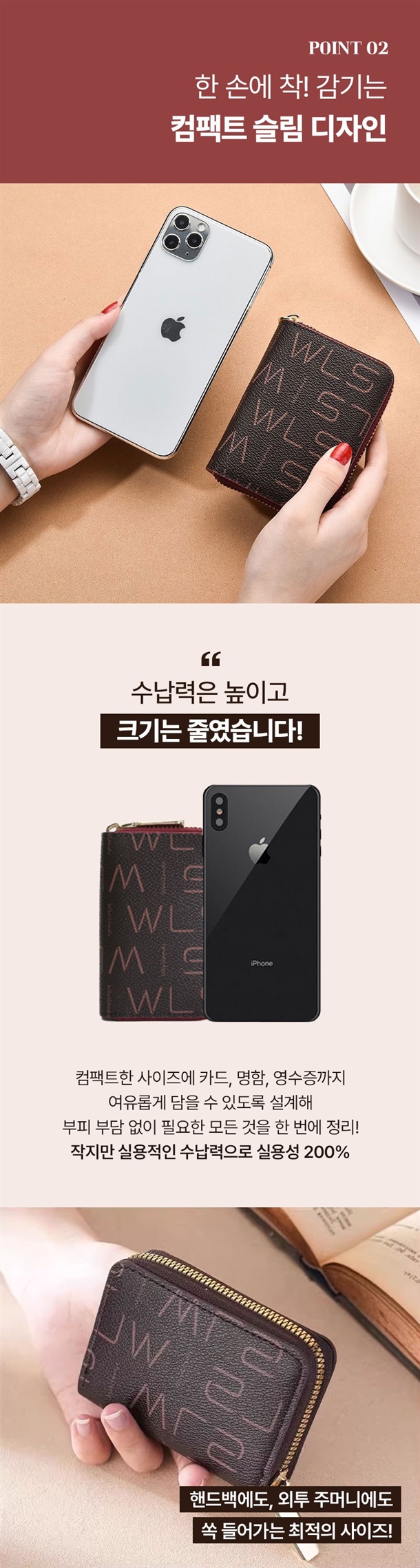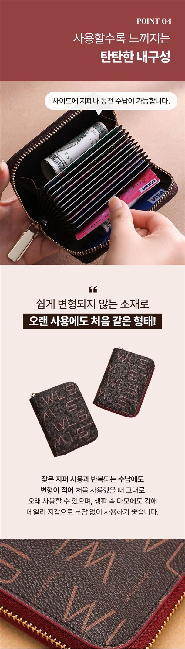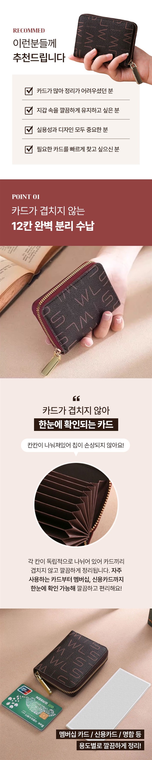 이건 열자마자 카드가 쫙 펼쳐져서 한눈에 보여서 찾을 때 진짜 편해요 ?? 아코디언 구조라 카드가 최대 12장 이상까지 들어가고 현금이나 영수증도 같이 보관 가능해요