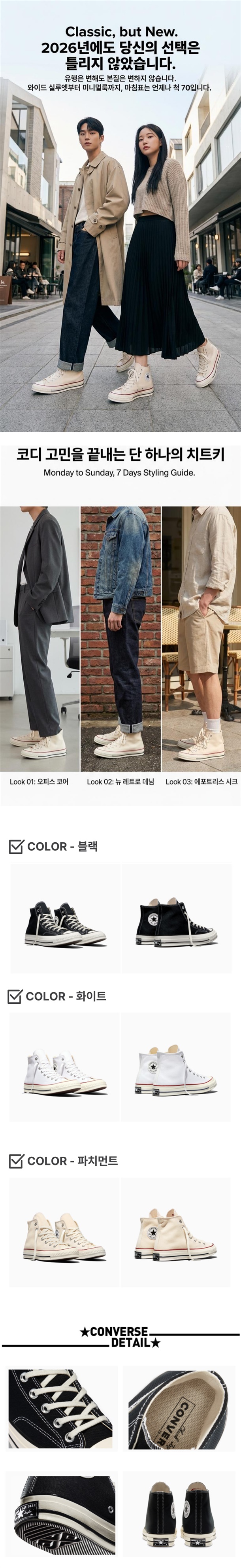 빈티지 감성과 편안한 착화감을 모두 갖춘 Chuck 70 클래식 하이 스니커즈.