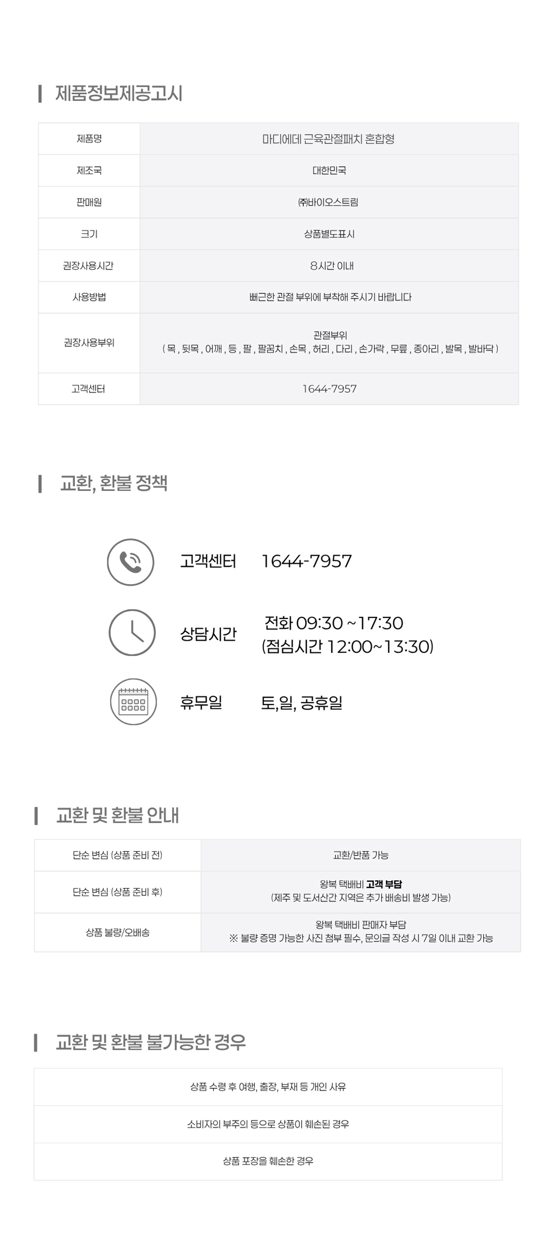 · 교환/반품/AS 등은 "공정거래위원회"에서 정한 소비자 분쟁 해결 기준을 따르고 있습니다.