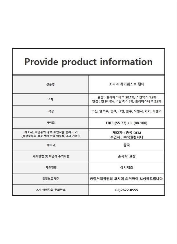 모찌처럼 쭉쭉 늘어나는 하이웨스트 팬티!