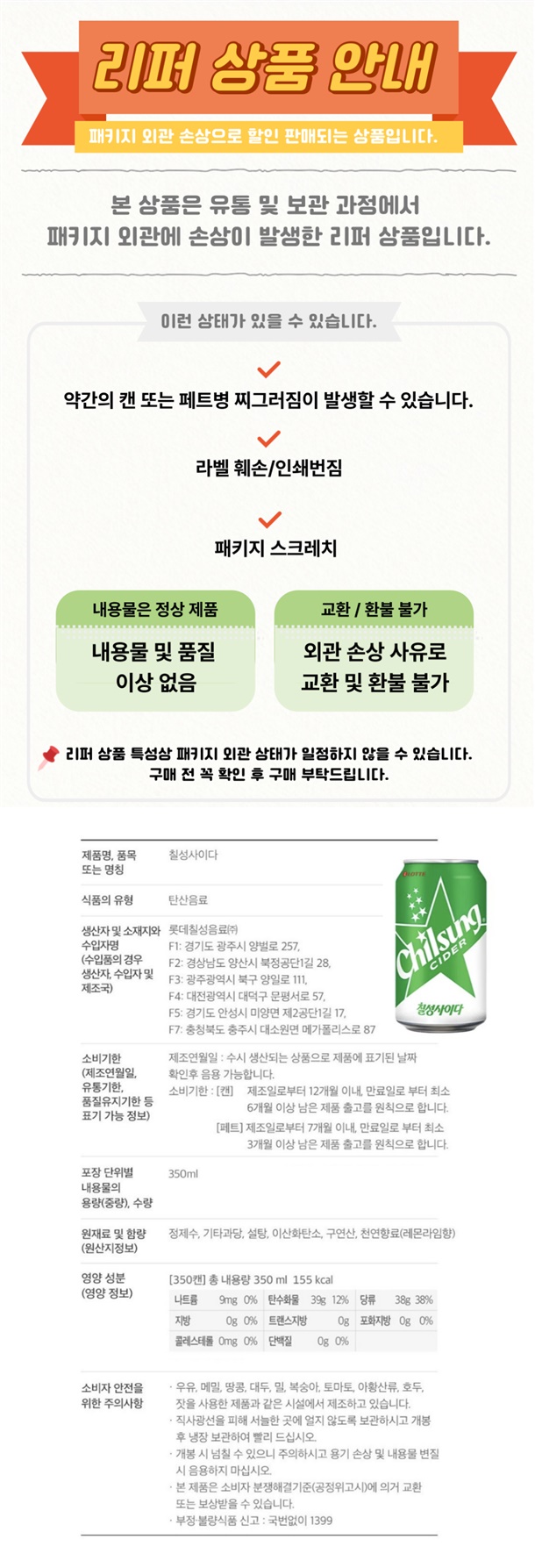 깔끔하고 시원한 청량감의 대표 사이다 탄산음료