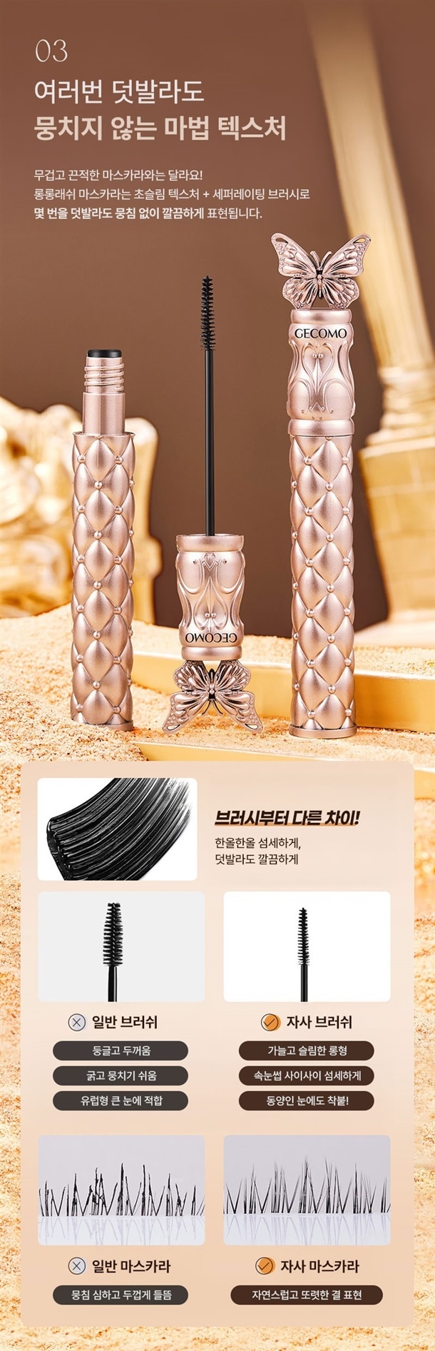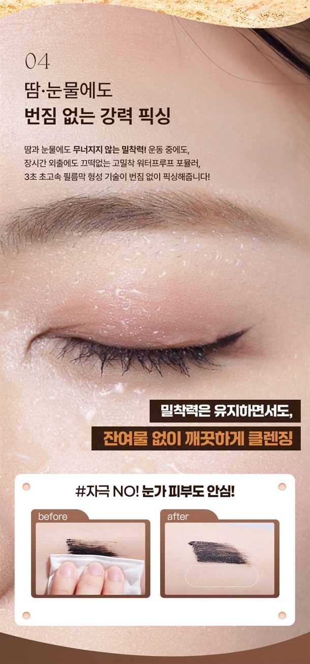뭉치지도 않고, 섬세하게 길어지는 느낌이라 과하지 않게 인형눈 완성되더라니까요!? 마스카라 자주 번지거나 뭉치는 분들한테 강력 추천하고 싶어요.