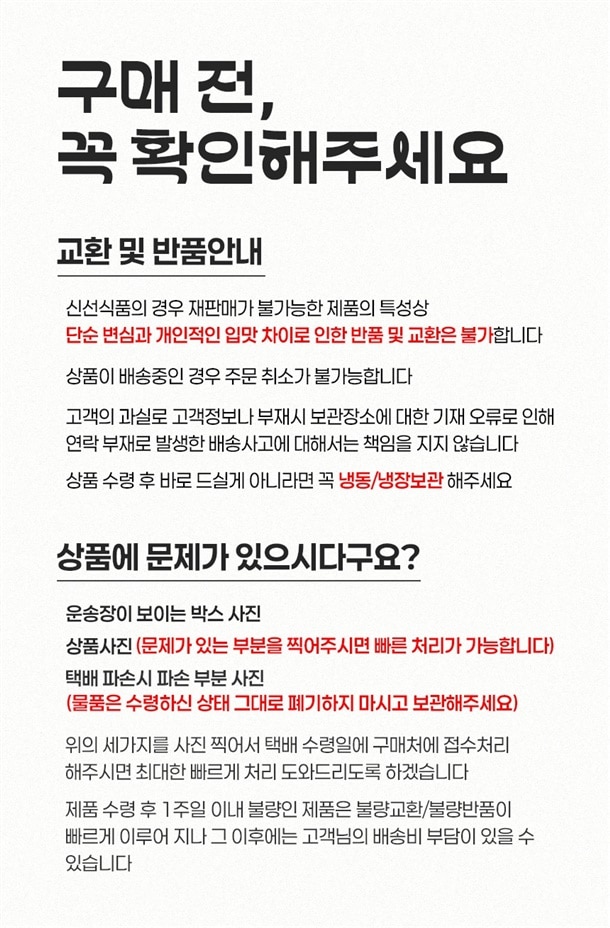 · 상품 불량 사유와 사진을 남겨 주시면 빠른 처리가 가능합니다.
