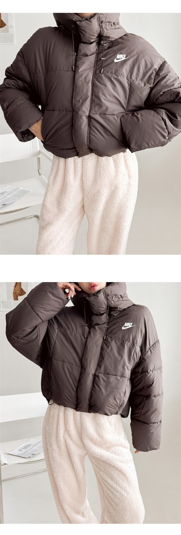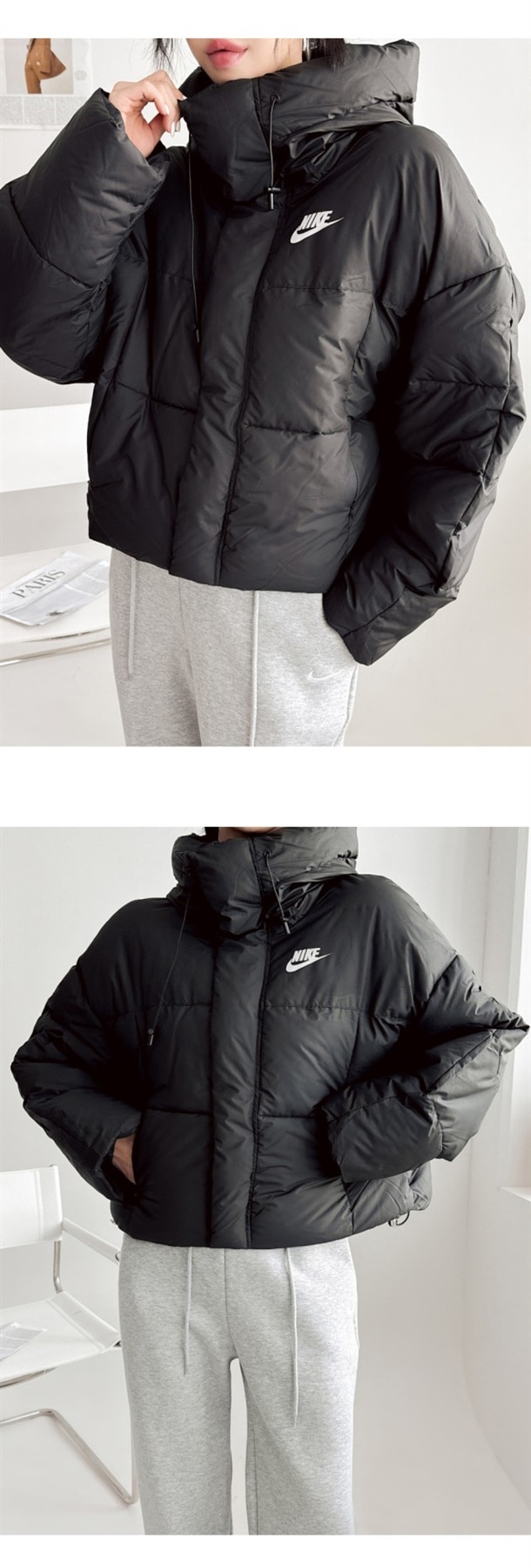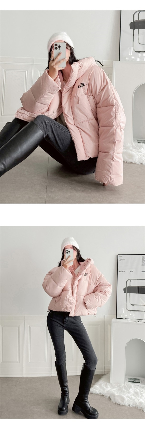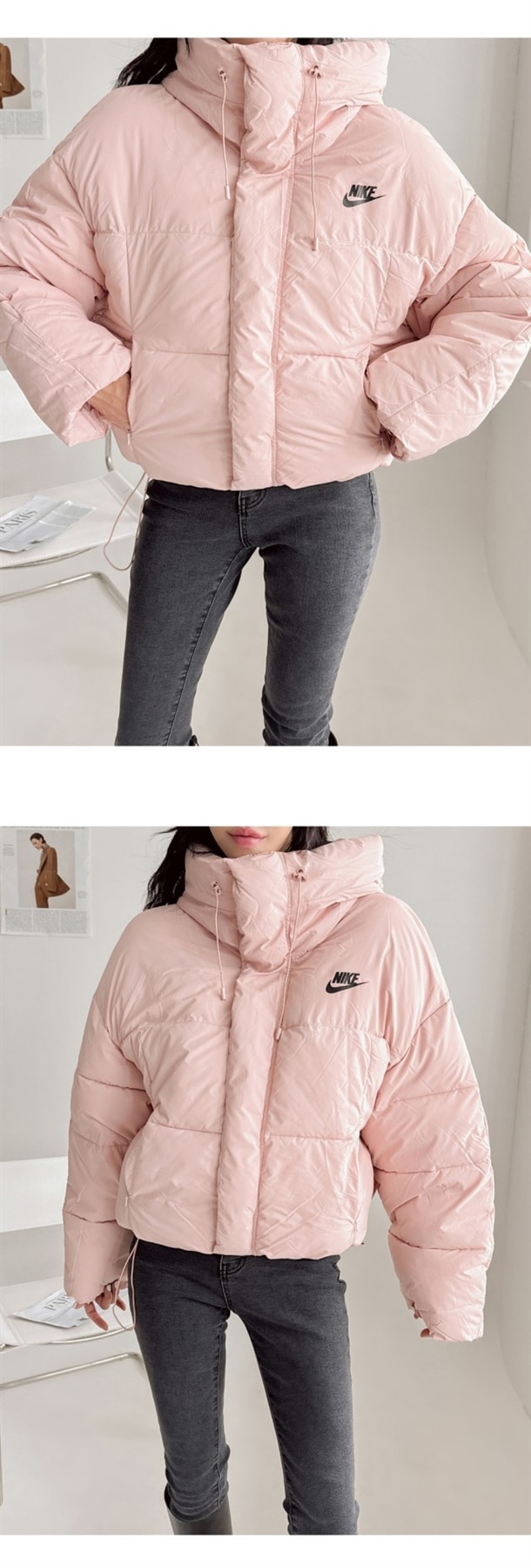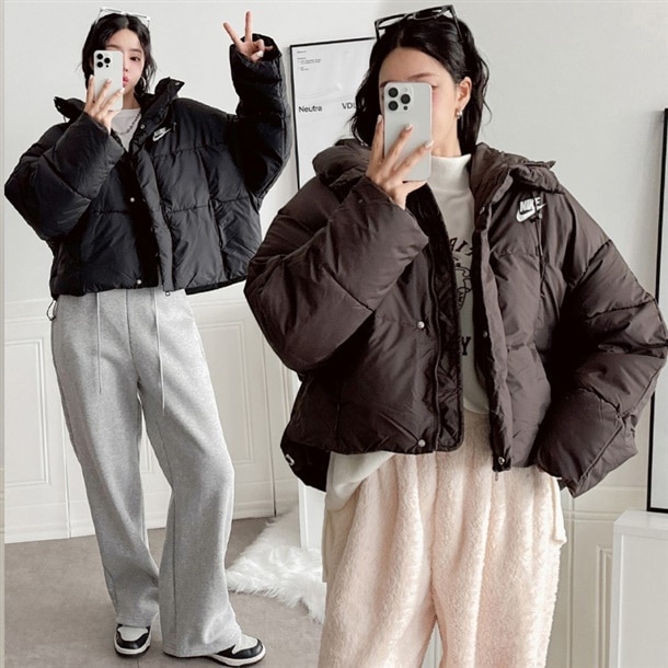 세미 숏 패딩 스타일로 오버핏에