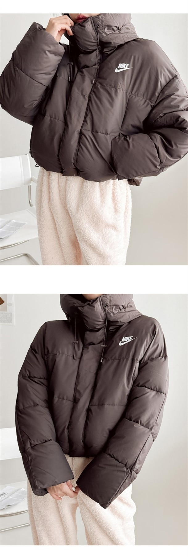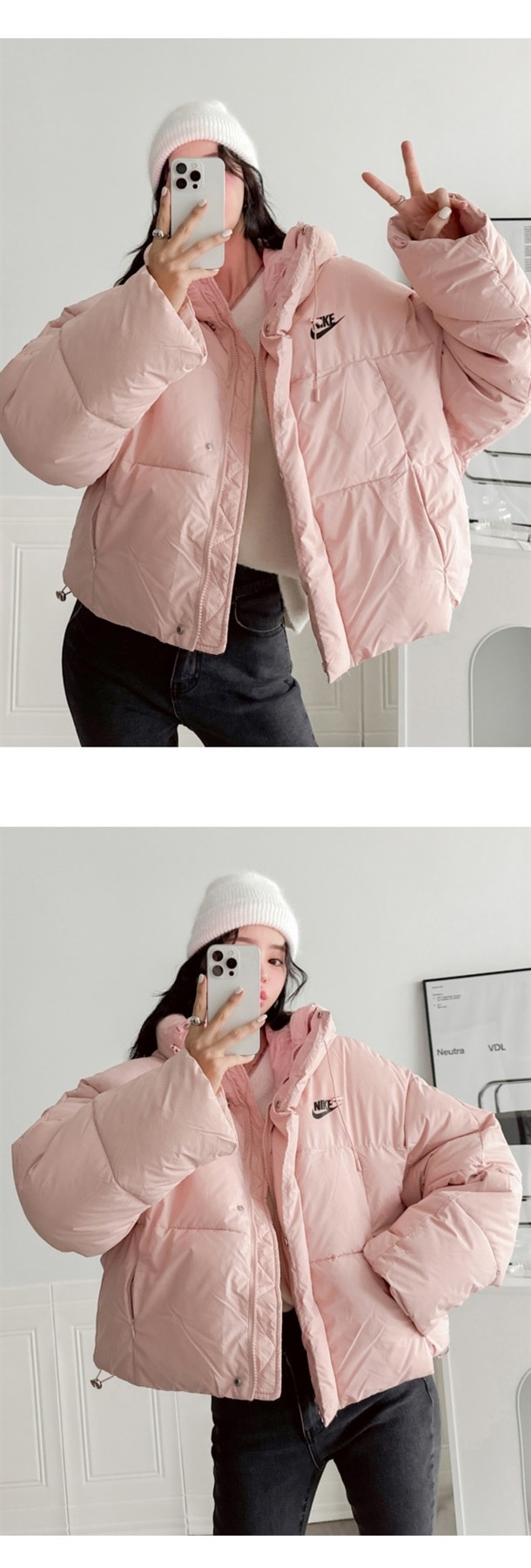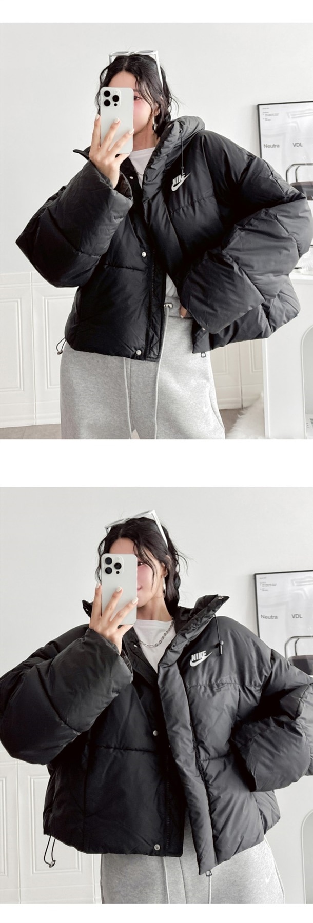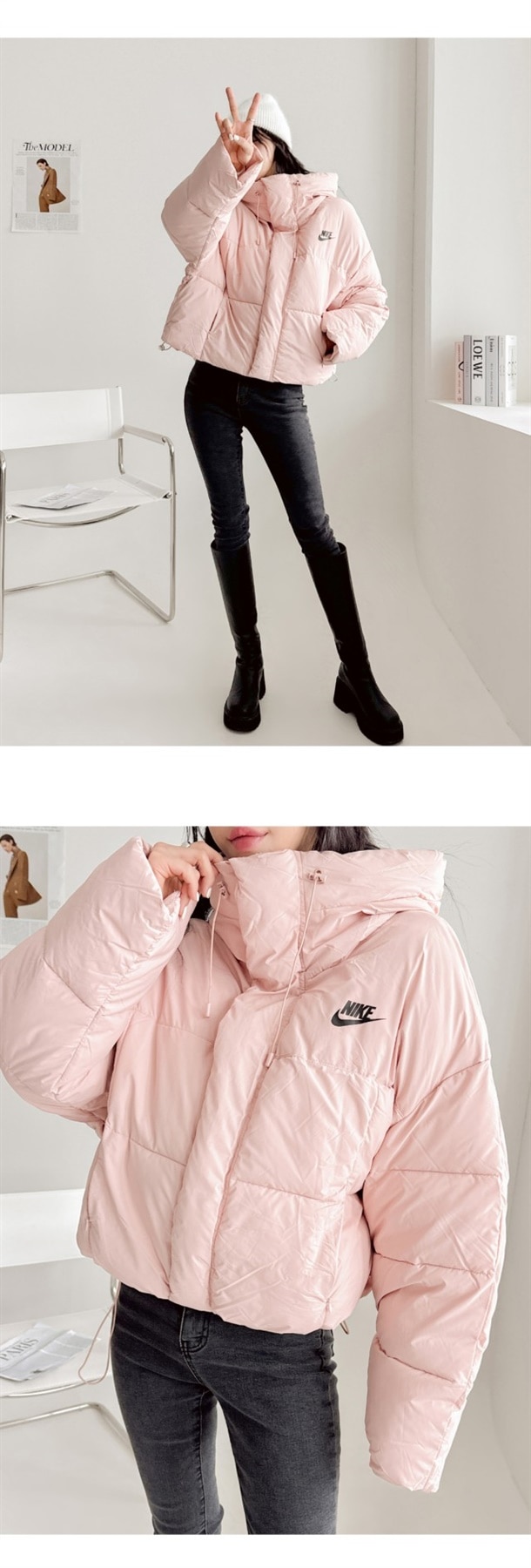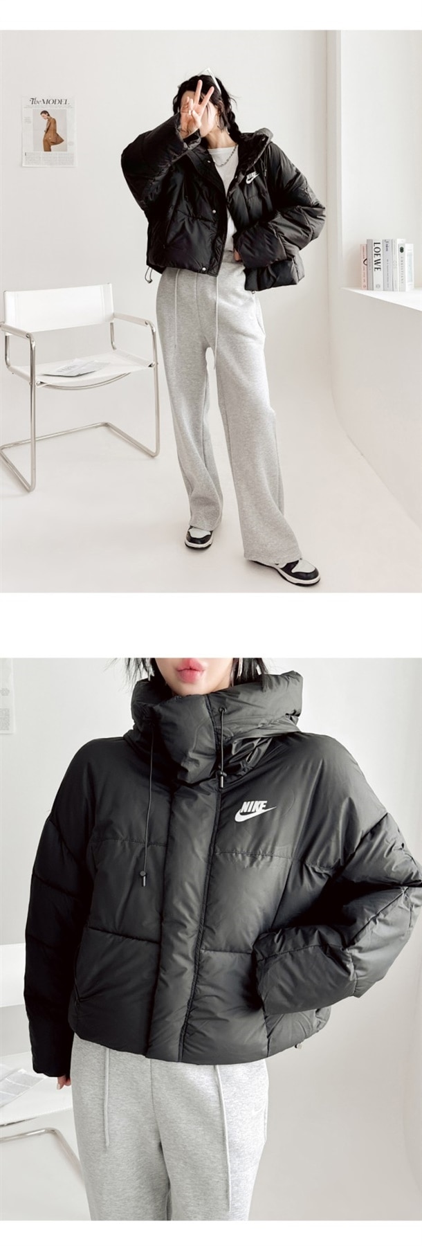 세미 숏 패딩 스타일로 오버핏에