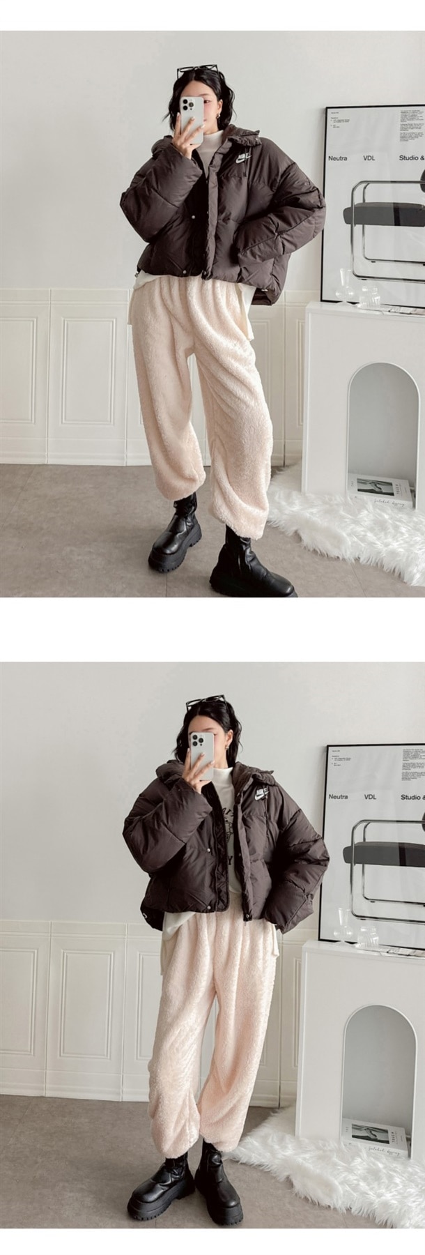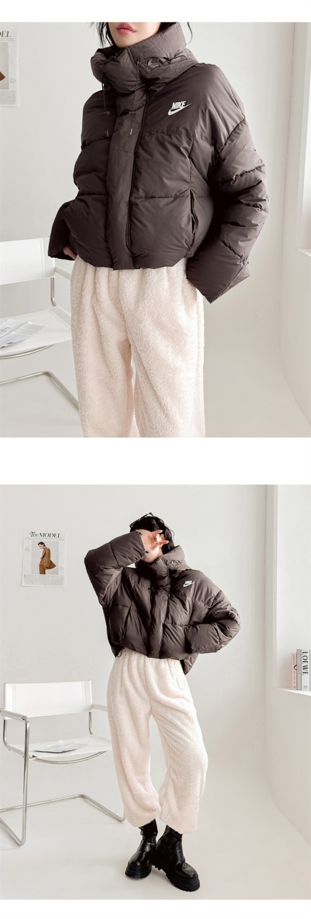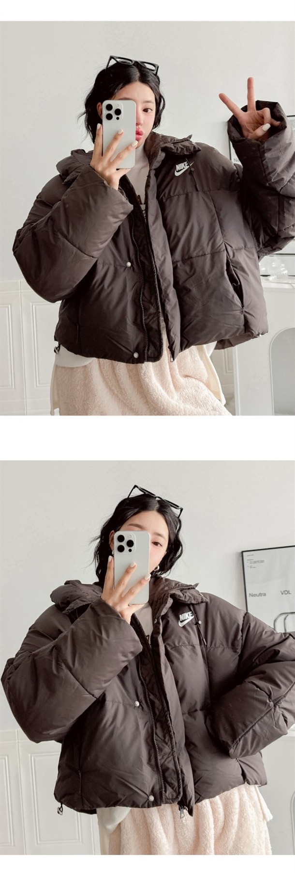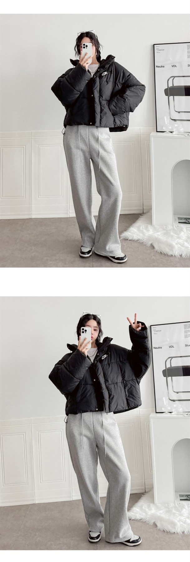 세미 숏 패딩 스타일로 오버핏에