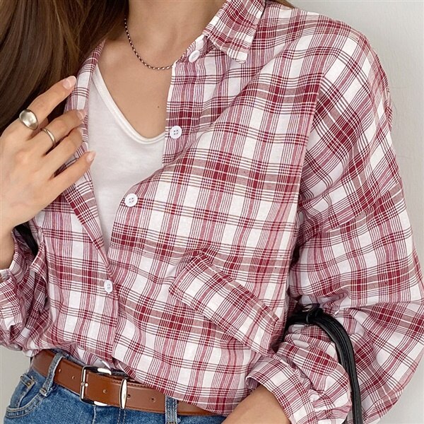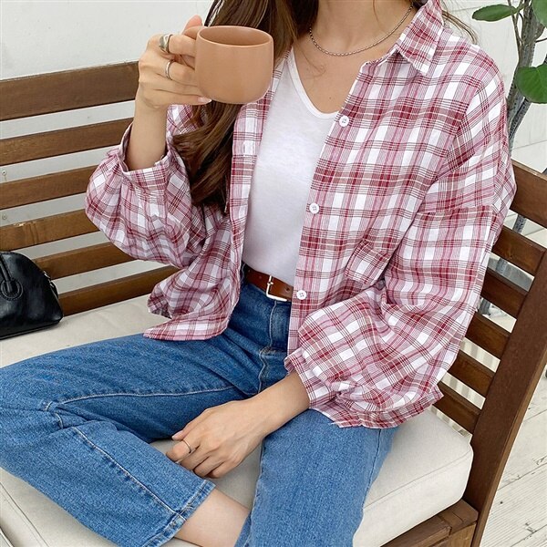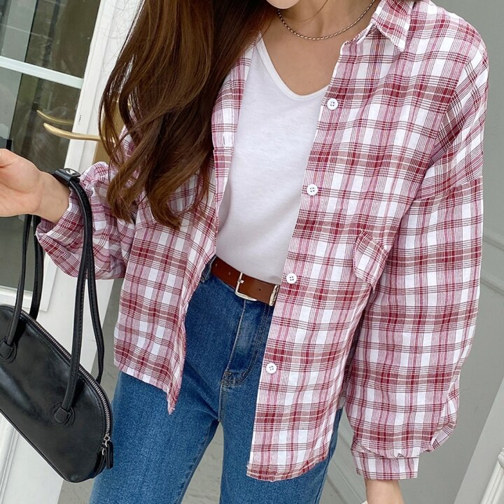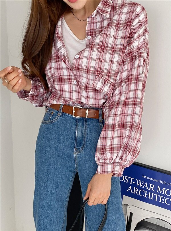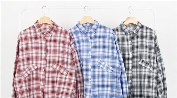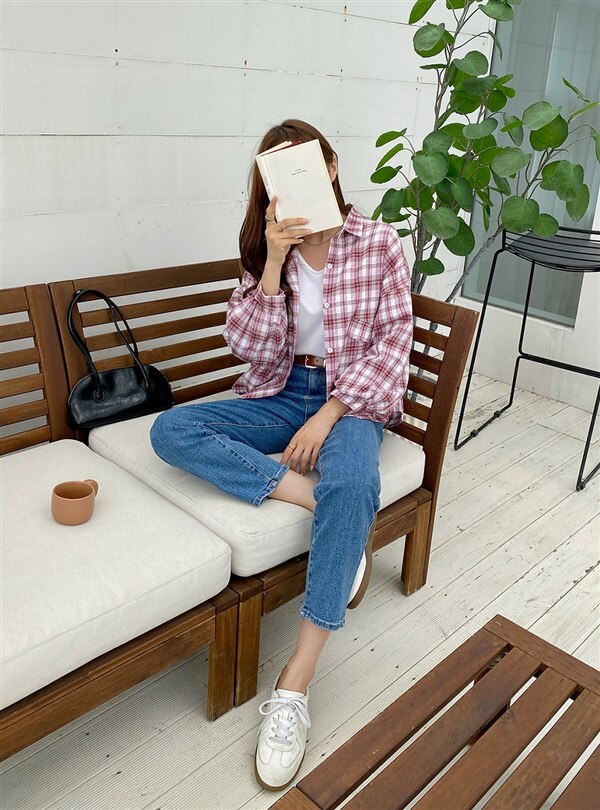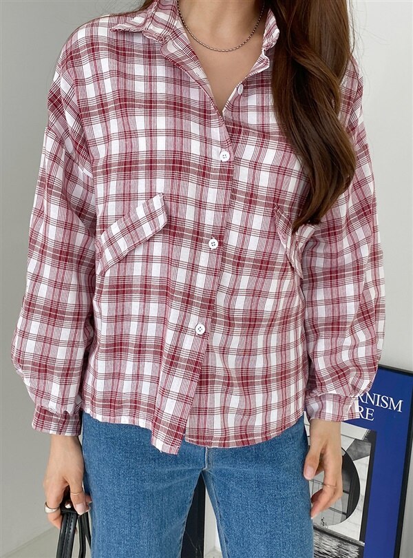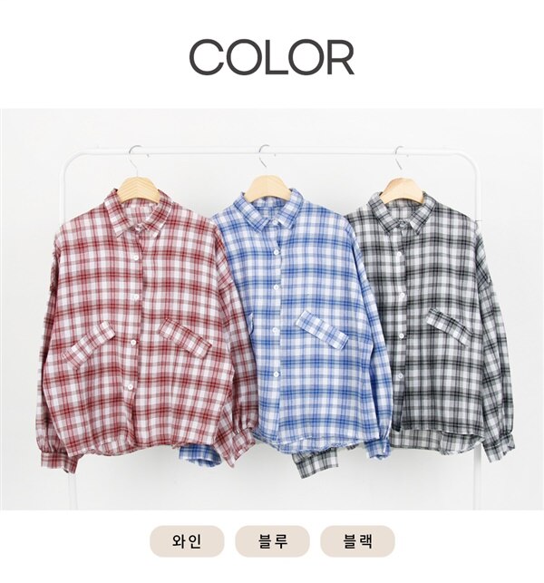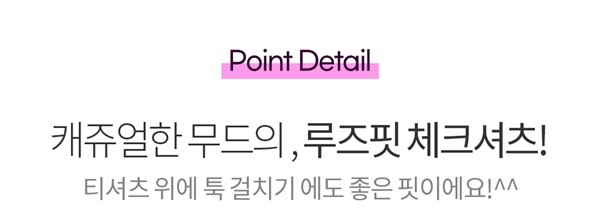 캐쥬얼한 무드의, 루즈핏 체크셔츠! 티셔츠 위에 툭 걸치기 에도 좋은 핏이에요!^^