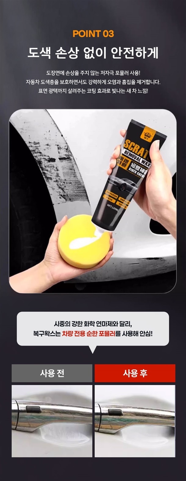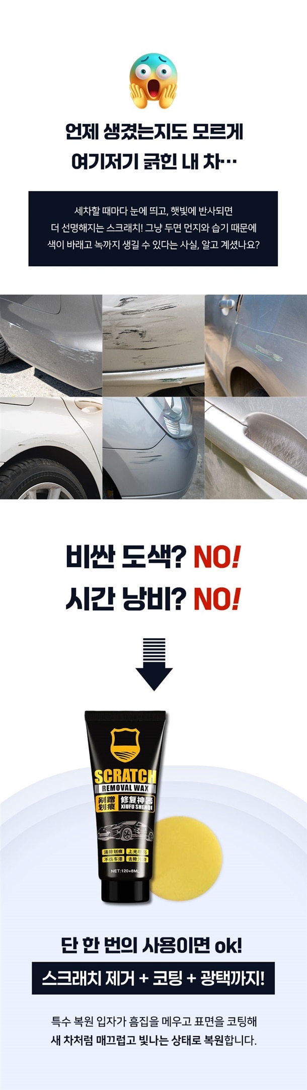 주차장에서 긁힌 자국이 너무 신경 쓰이고 속상했는데, 이 왁스 바르고 그냥 가볍게 문지르기만 했는데 뭐예요..? 진짜 감쪽같이 사라져서 안보여요..!! 남편이 차 다시 뽑았냐고 놀라더라구요ㅎㅎ